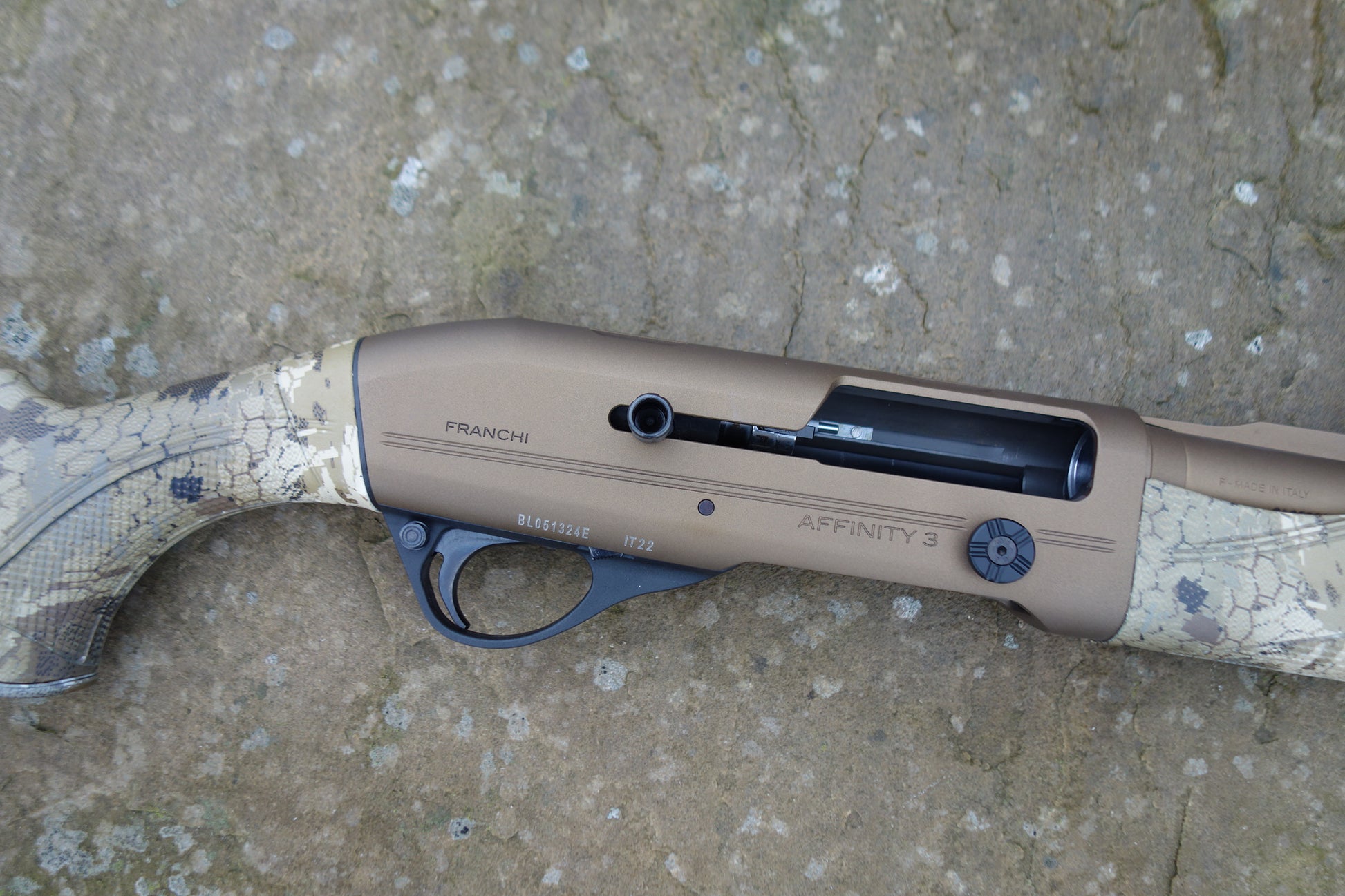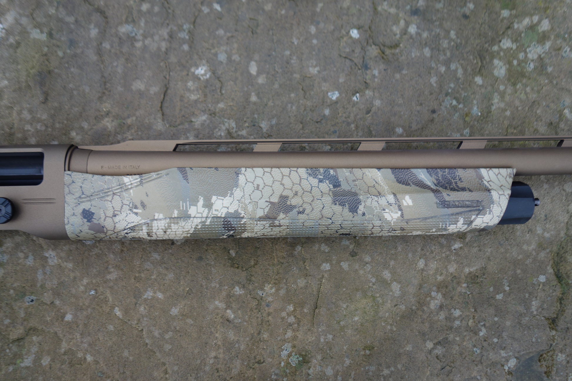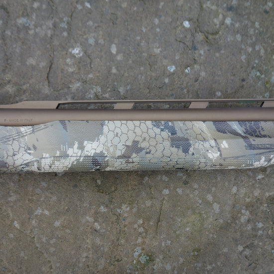 Bronze cerakote barrel and receiver, camo synthetic stock and forend, extended multi chokes, 3" magnum and HP steel proofed, Pre owned but remains unfired.