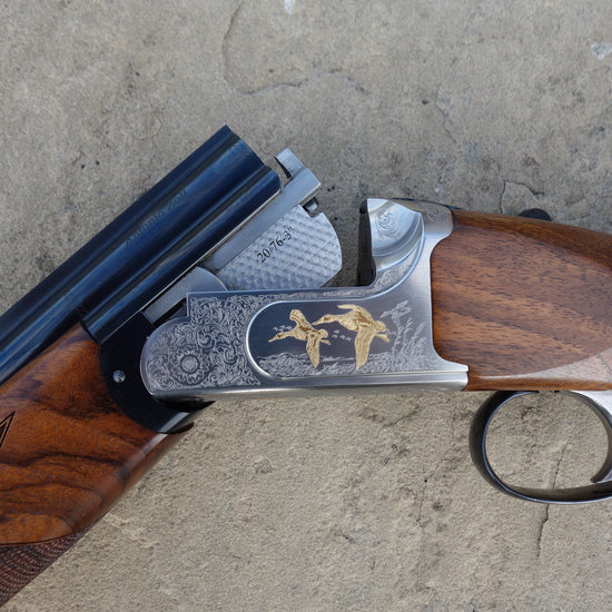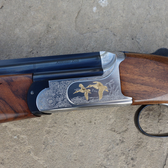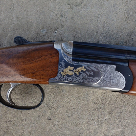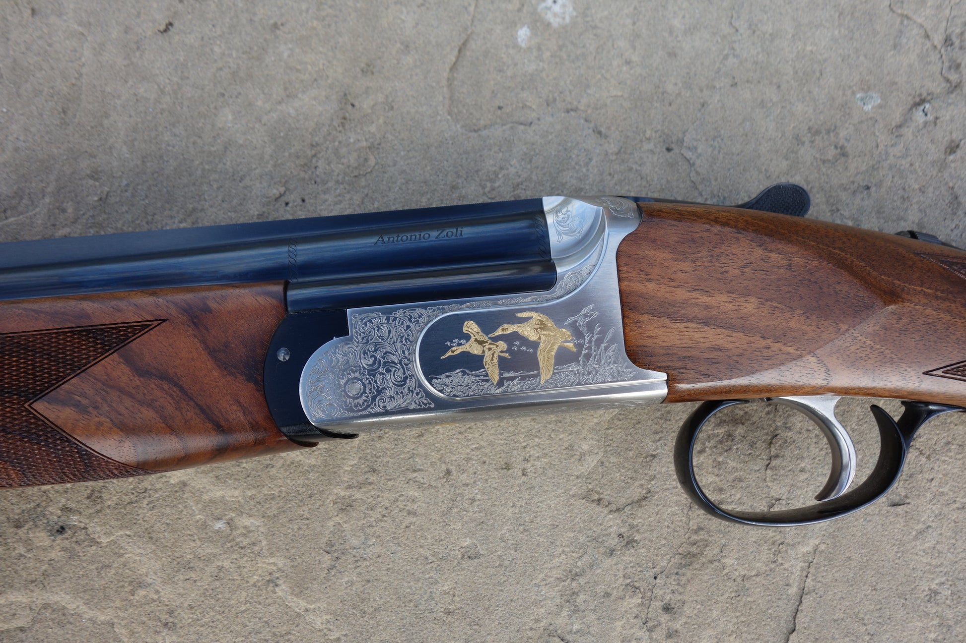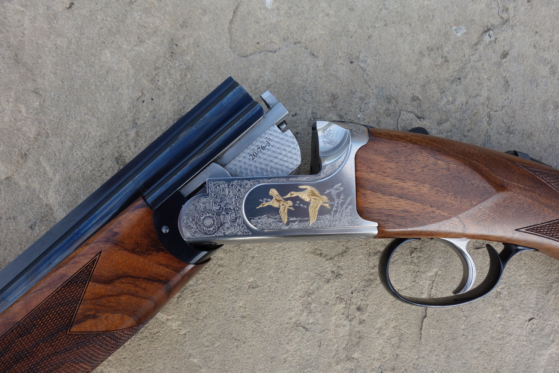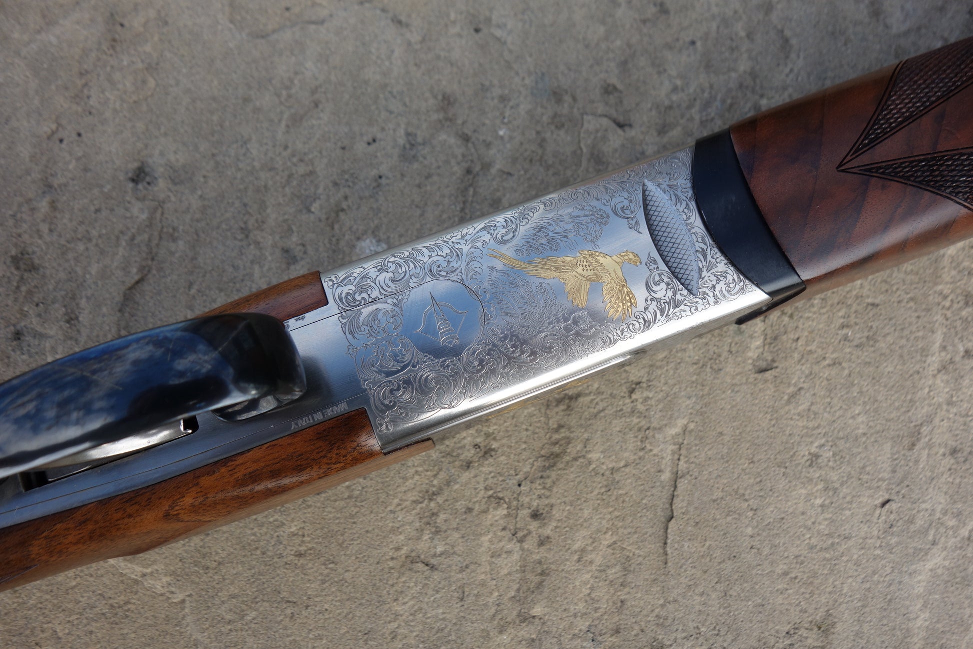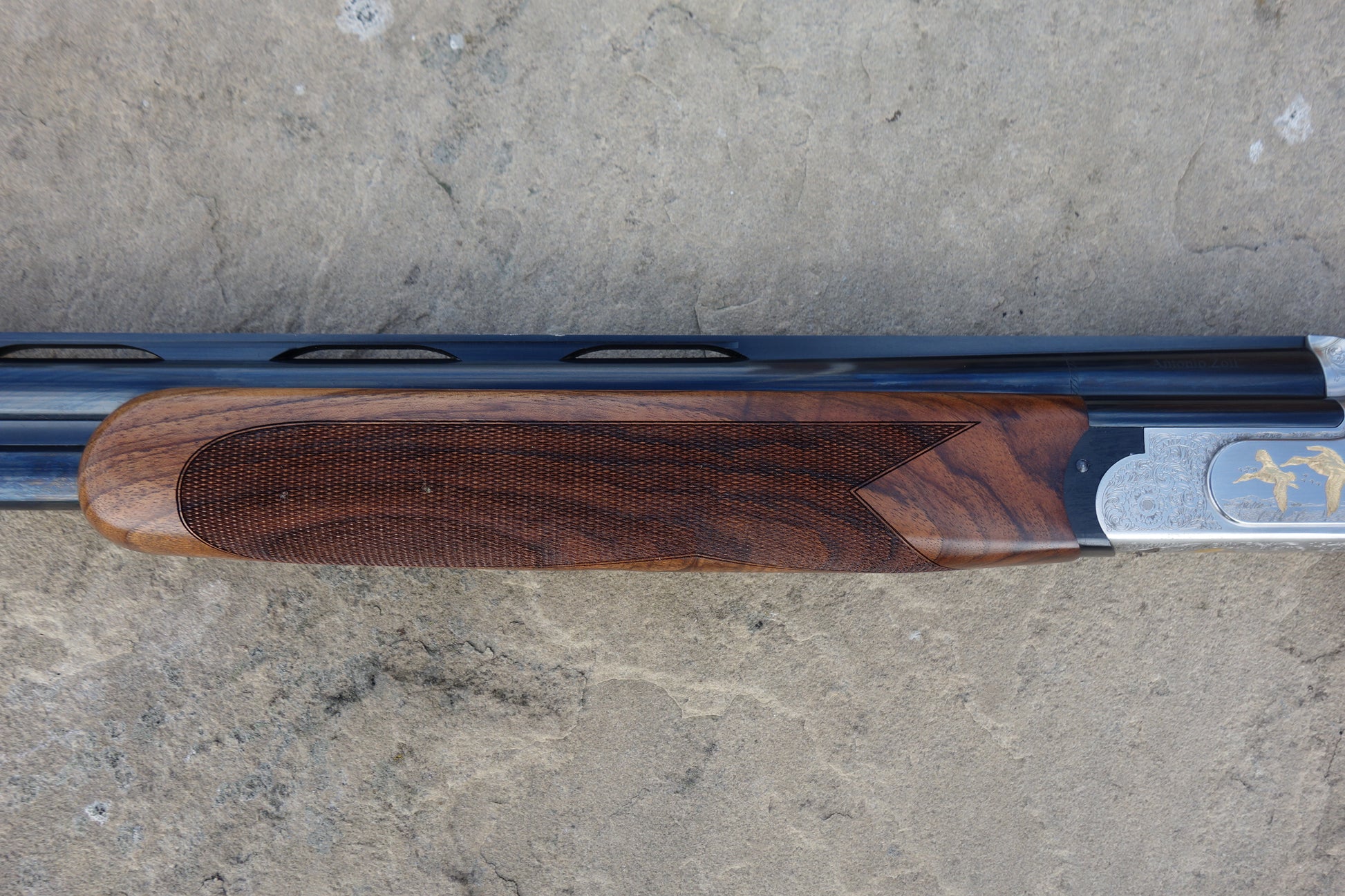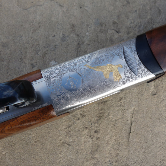 A well balanced modern game gun with low profile receiver, tapered rib barrels fitted with flush multi chokes, 3" magnum and HP steel proofed, game scene engraved with attractive walnut stock and forend, ABS case and superb condition.