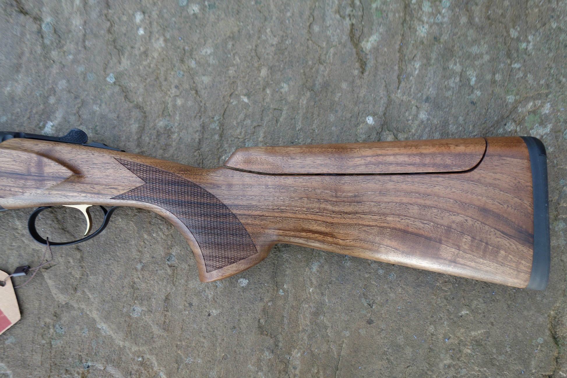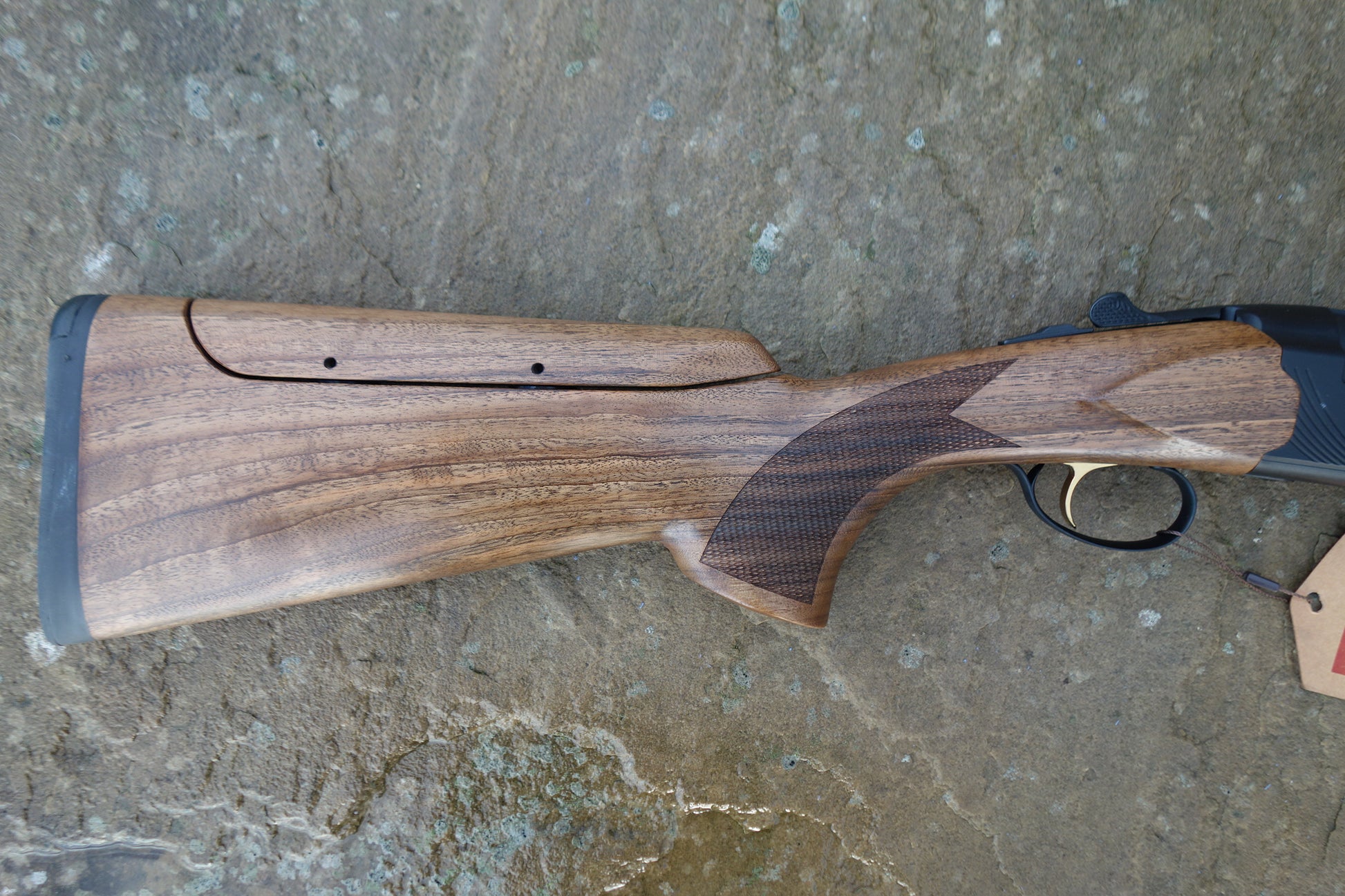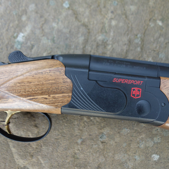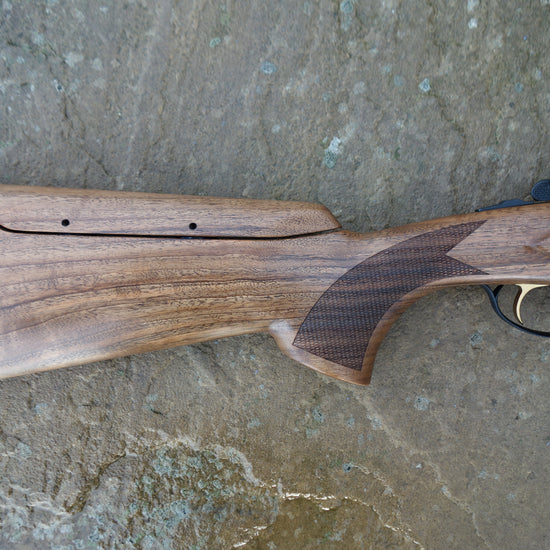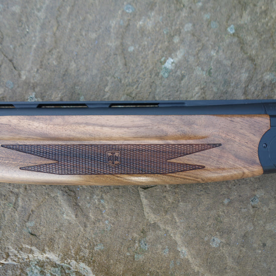 Matt black receiver with matching vent side rib barrels and extended multi chokes, Figured walnut stock with adjustable comb and matching sporting forend, 3" magnum and HP steel proofed.