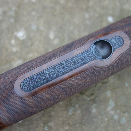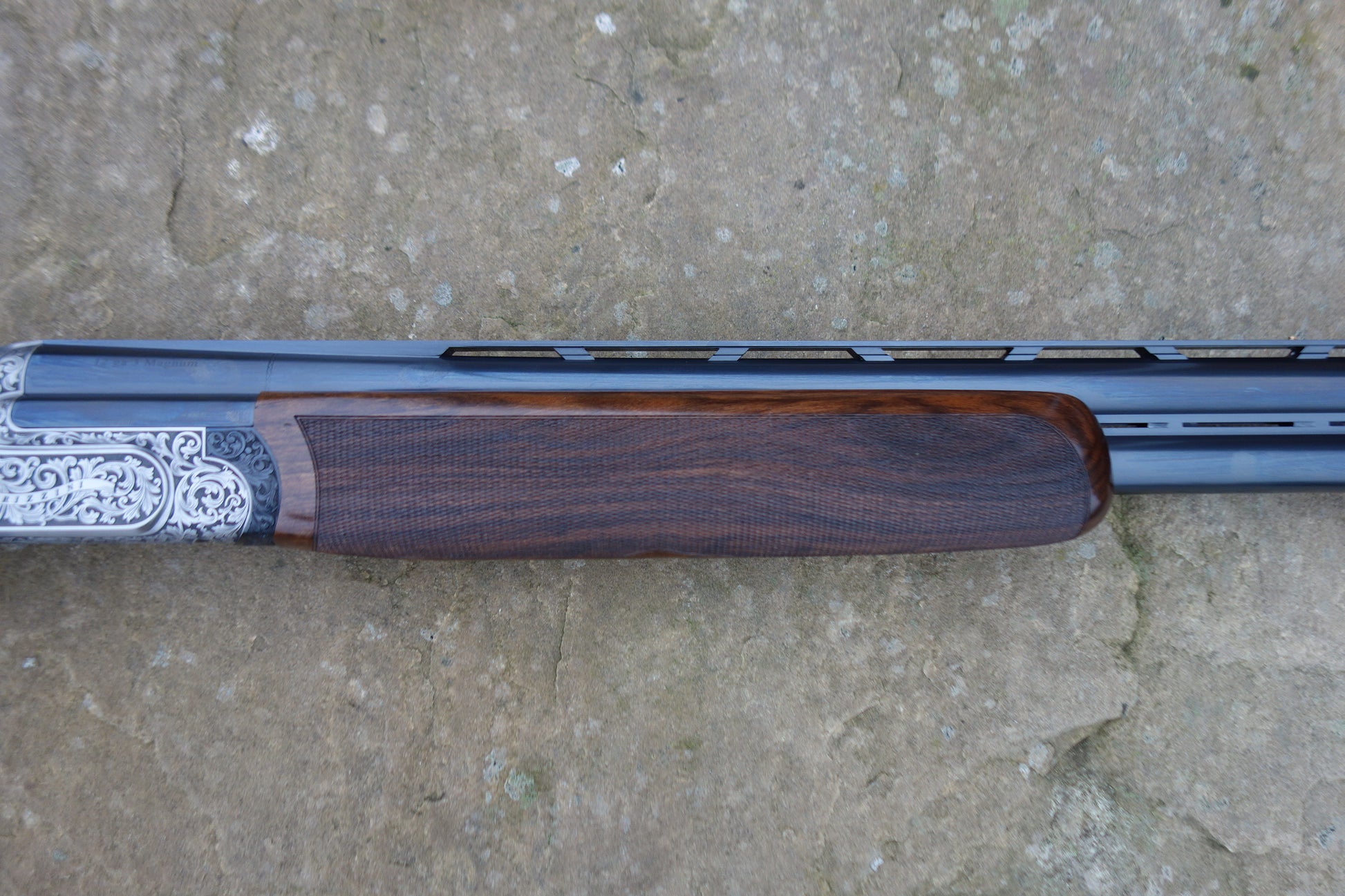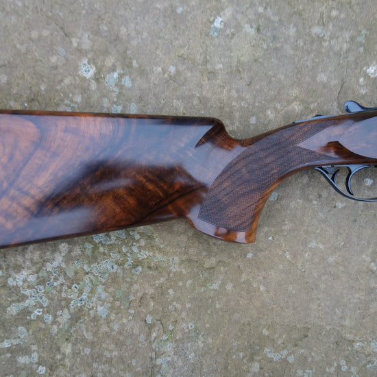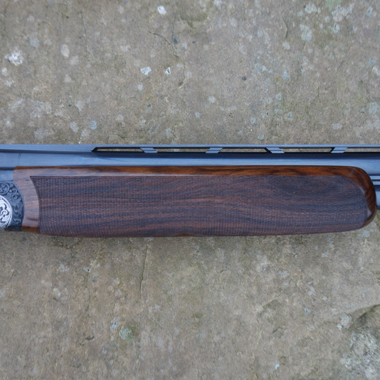 The quality of this gun reaches far beyond its price tag, Boss style action with patent locking system, detachable trigger group, bold floral scroll engraved receiver, barrels bored at 18.4, flat tapper top rib, extended long multi chokes, stunning Turkish walnut stock with palm swell grip and full rounded forend, 3" magnum and HP steel proof, less than 6 weeks old and as new condition.