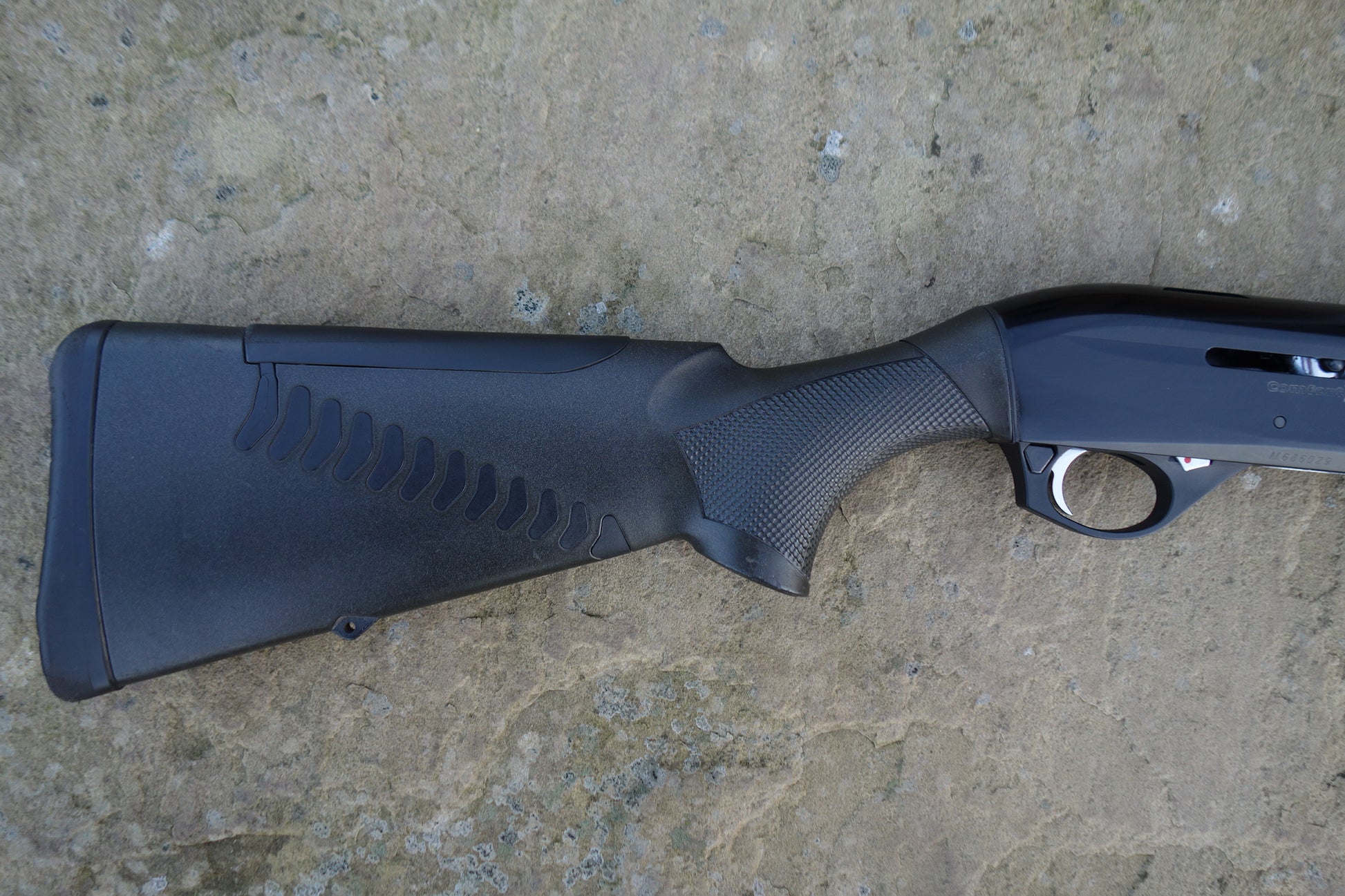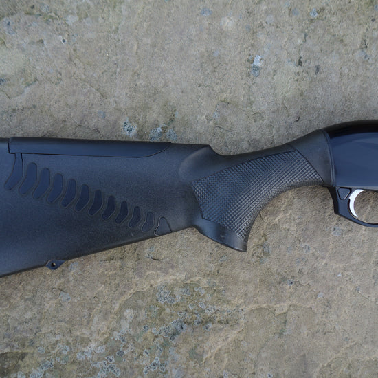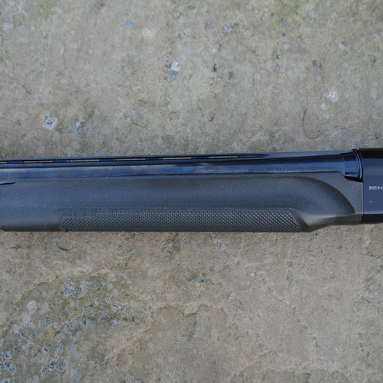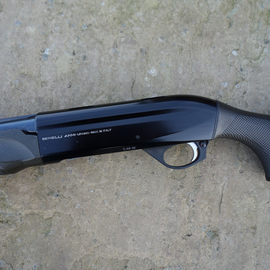 Black synthetic Comfortech stock and forend, flush fitting multi chokes, 3" magnum and HP steel proofed, Benelli ABS case.