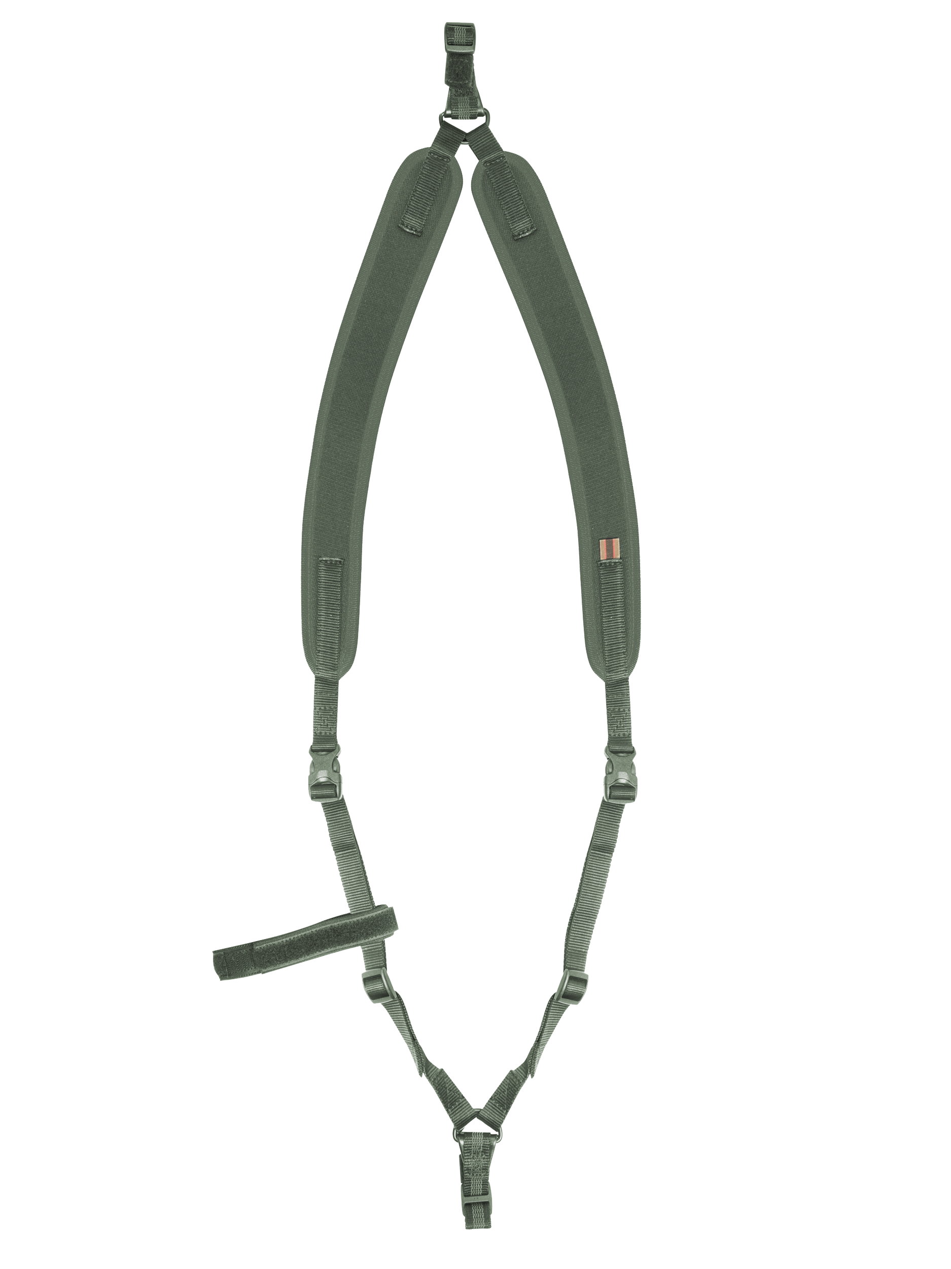 Padded backpack sling for shotgun or rifle. Made of durable polyester with Duraflex® buckles for maximum reliability. Optimal weight distribution of the weapon increases the hunter's stamina and reduces fatigue.