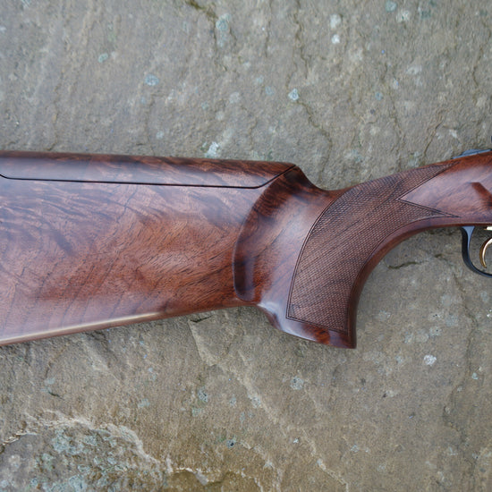 Superb handling to match its looks, black receiver with gold accent paired to an exceptionally well figured stock with palm swell grip and adjustable comb, extended DS Invector multi chokes, 3" magnum and HP steel proofed barrels, makers ABS travel case.