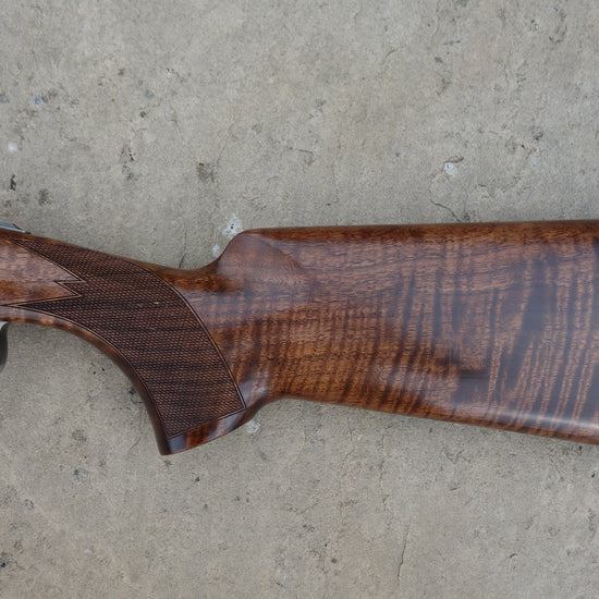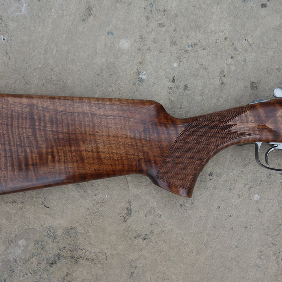 As new condition having only been fired the once from new, Very well figured stock and slim sporting forend, matt black barrels fitted with invector DS 2 extended chokes, 3" chambers and HP steel proofed, supplied with ABS case and all original documents and spare chokes, undistinguishable from new.