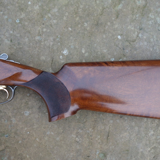 GP trap in pristine condition, extended invector plus chokes and HP steel proofed, adjustable trigger blade and 14mm top rib, makers case and spare chokes included.