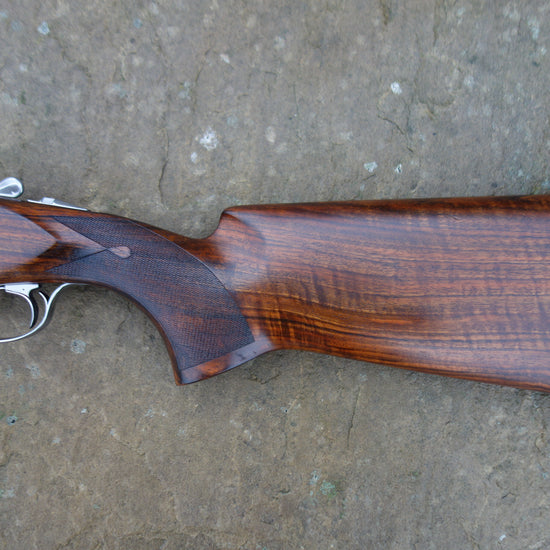 A great entry level competition gun with all the handling characteristics you would expect, but with out the new gun price tag, a well figured dark stock and forend, Kick-eez recoil pad, 8x extended multi chokes, suitable for HP steel loads, makers ABS travel case.