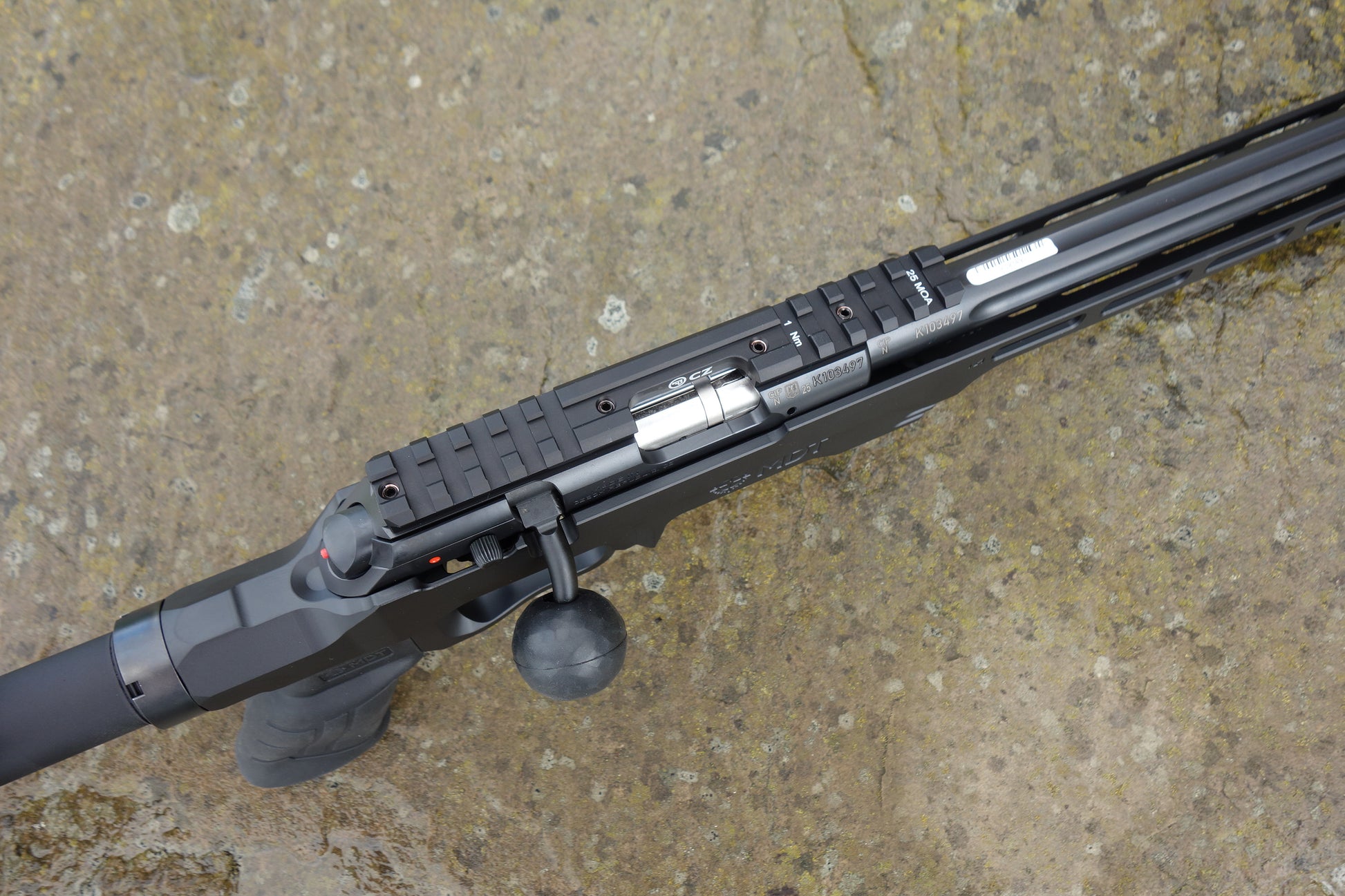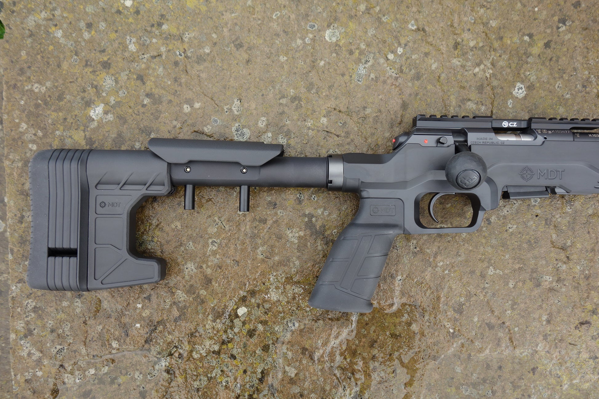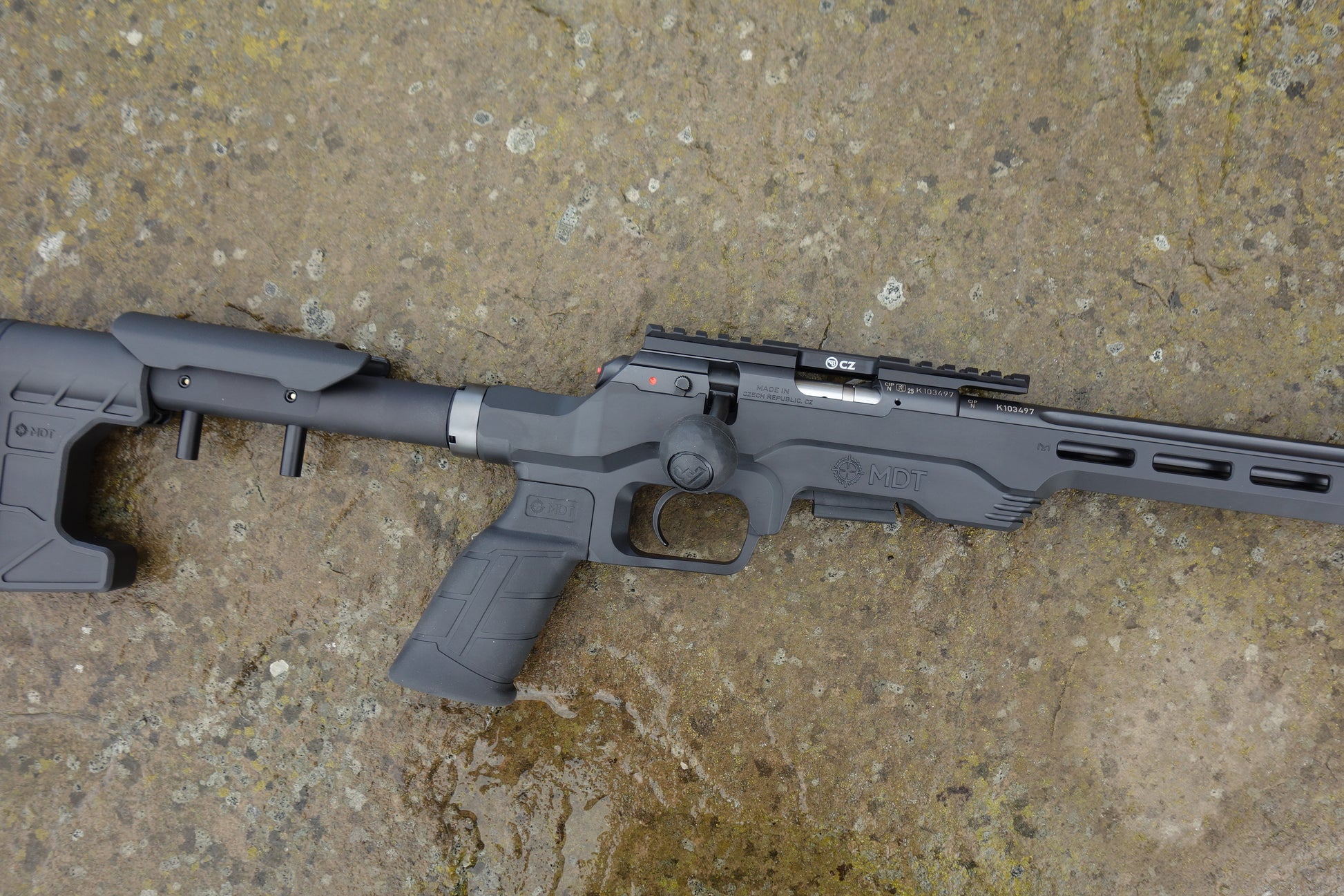 20" heavy fluted barrel paired with an MDT tactical stock, oversized bolt handle and picatiny scope rail, 5 round detachable magazine.