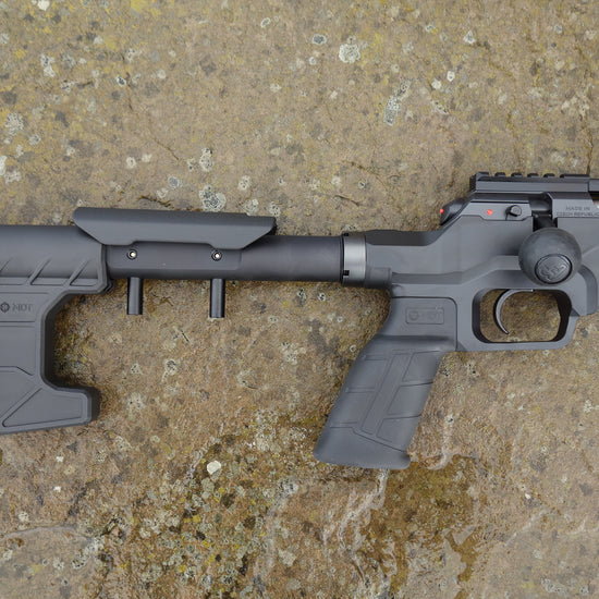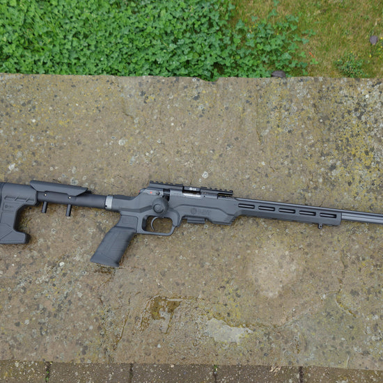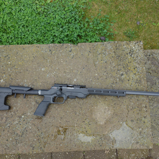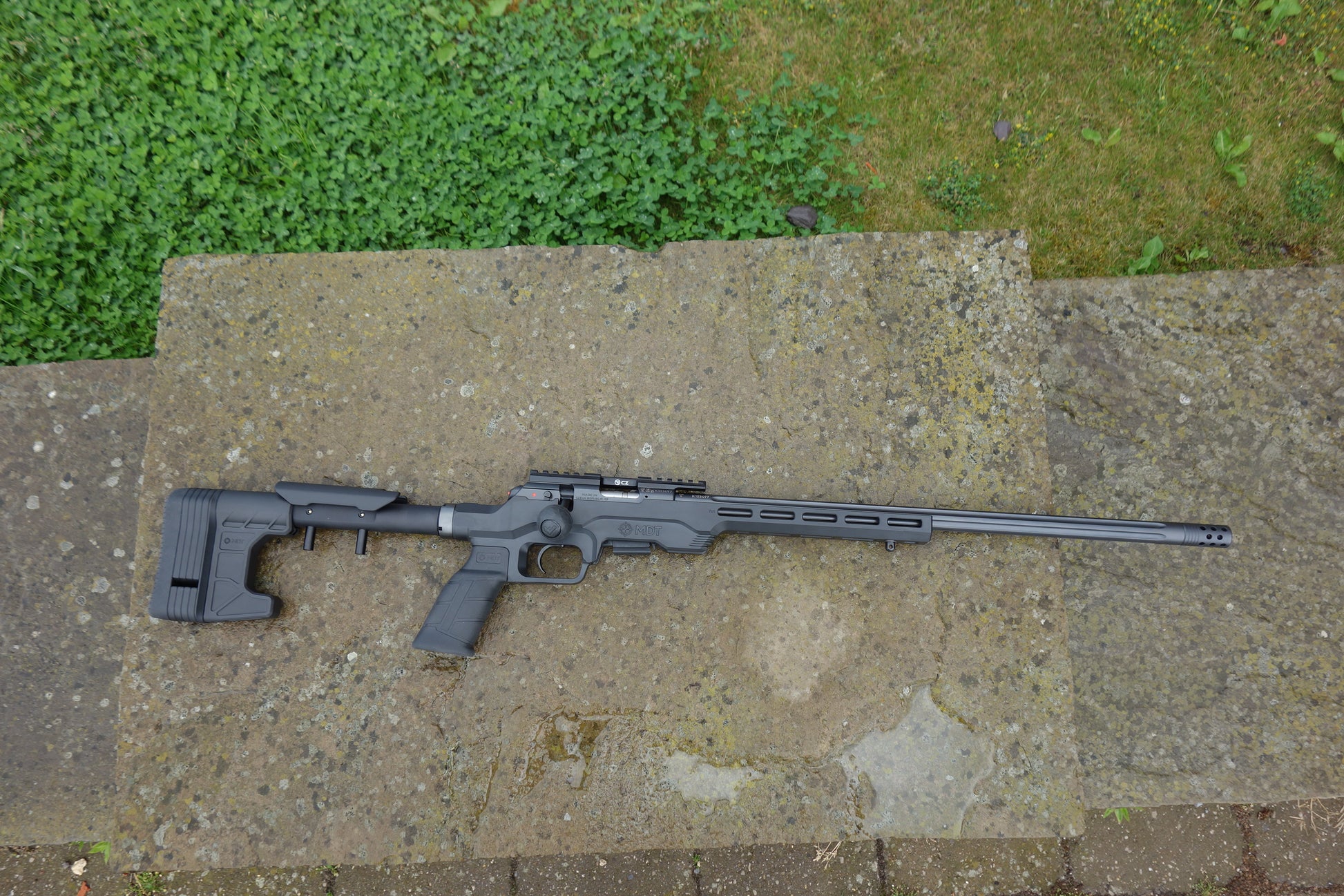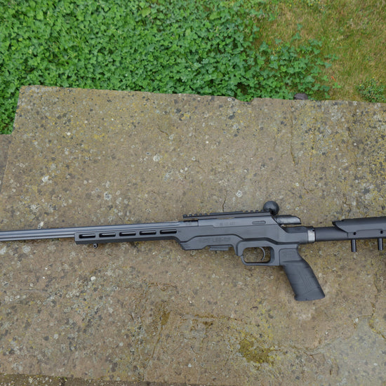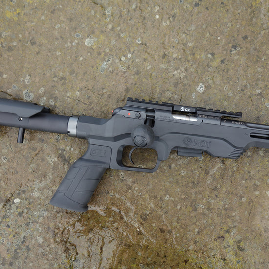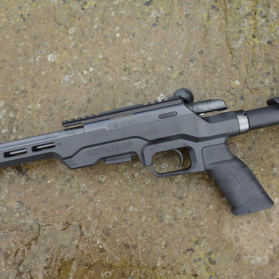 20" heavy fluted barrel paired with an MDT tactical stock, oversized bolt handle and picatiny scope rail, 5 round detachable magazine.