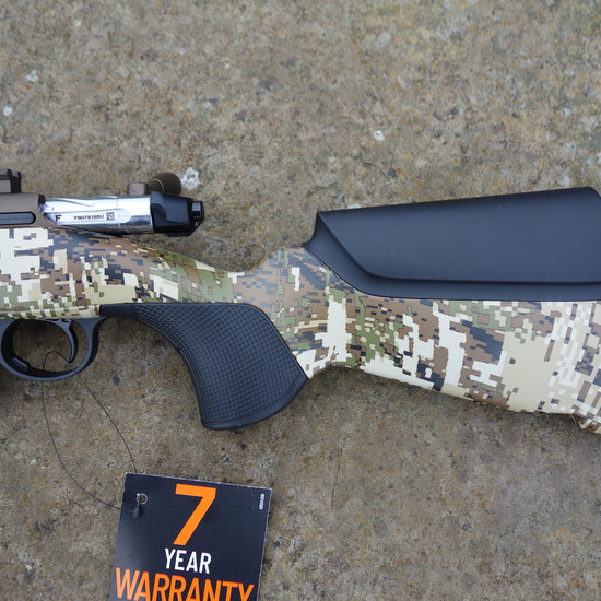 24" heavy fluted barrel with 14x1threaded muzzle including muzzle break, cerakoted receiver and barrel, picatinny scope rail, detachable magazine x2, fluted bolt, digicam stock with high cheek piece, sub moa accuracy guaranteed and 7 year warranty, outstanding value for money.