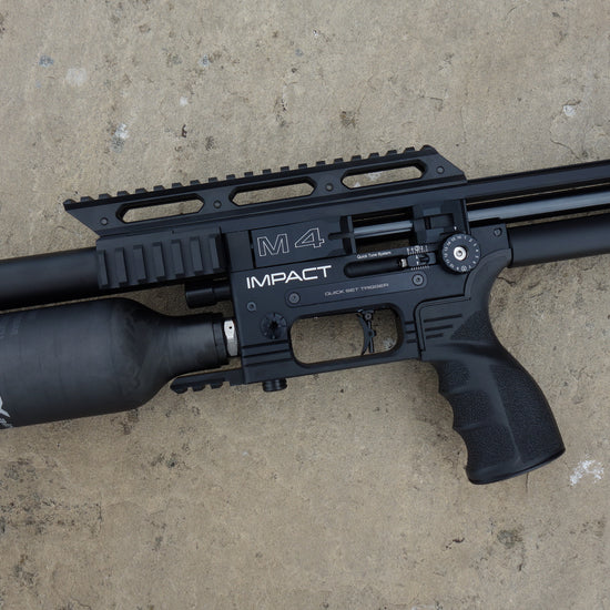 The FX Impact M4 has a completely redesigned high-capacity magazine which are now made from much stronger materials and include a new internal mechanism to ensure the inner drum will rotate smoother even when loading the heaviest slugs available on the market. The Impact M4 also now comes standard with a new brass piston regulator that is stronger and has faster refresh rates. A far more consistent and easily handled higher bottle pressures with a max pressure of 170bar.