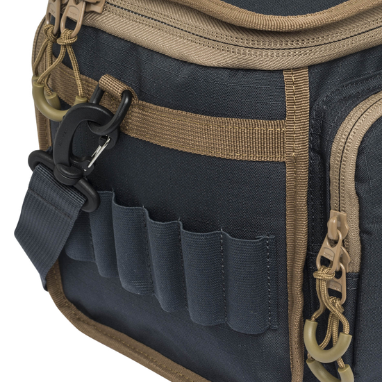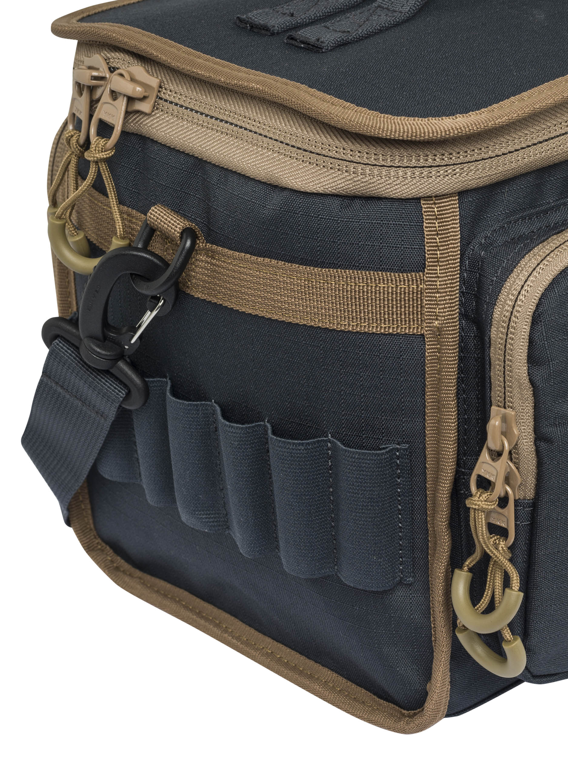 Cartridge bag holding up to 6 boxes x 25 cartridges with 3 external pockets for chokes, caps and other accessories.
