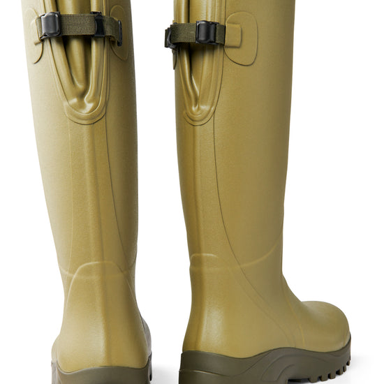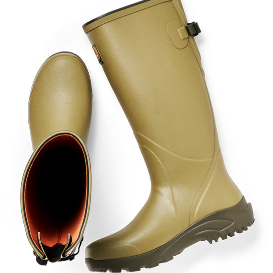 High rubber boot FIELDMASTER 18" 3mm from Gateway for men is suitable for every season. Made of a robust natural rubber compound, in combination with the Coil-Lining™ and neoprene lining, this rubber boot excels in comfort and quality. The coil lining regulates the foot climate and transports moisture away from the foot.
