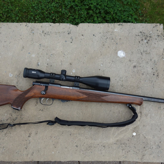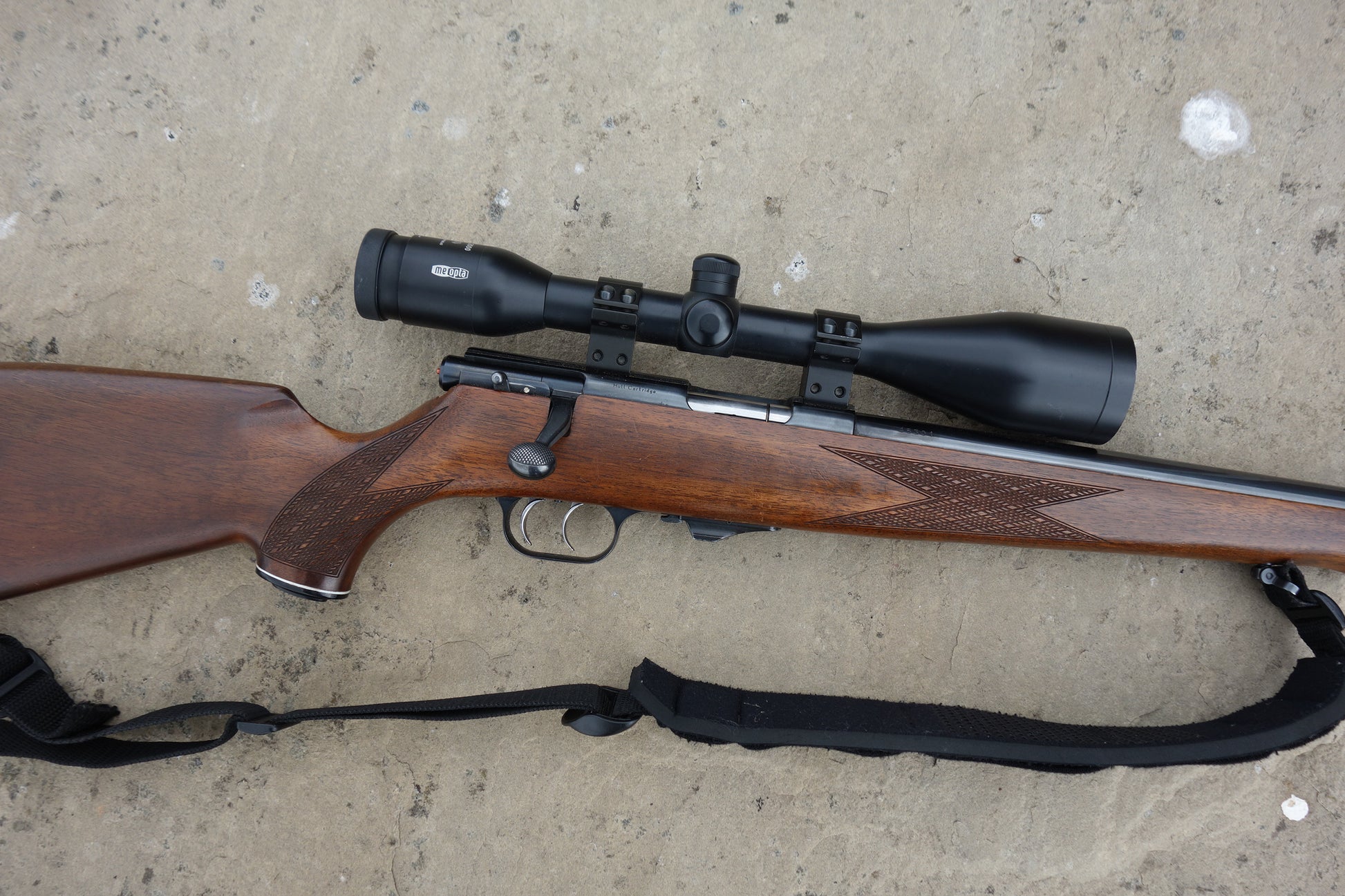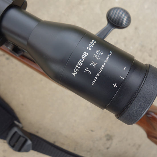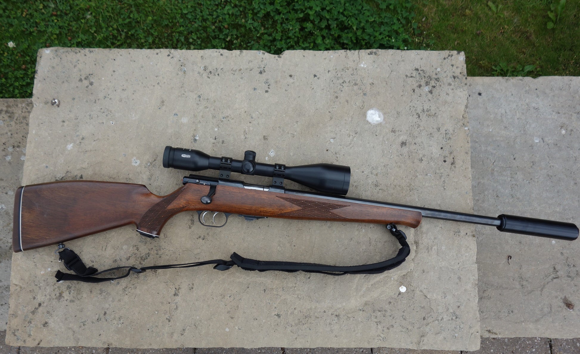 HW60J with 18" barrel and sound moderator, Meopta 7x50 Artemis 2000 scope, double set triggers.