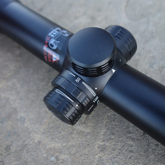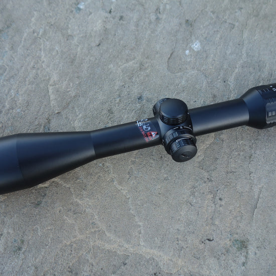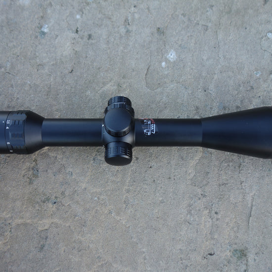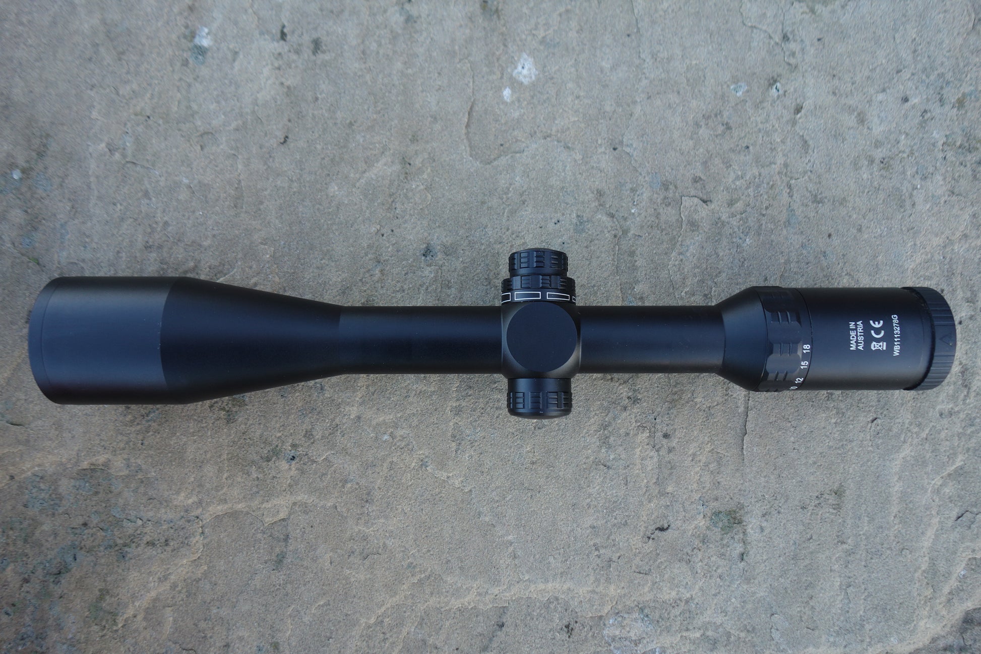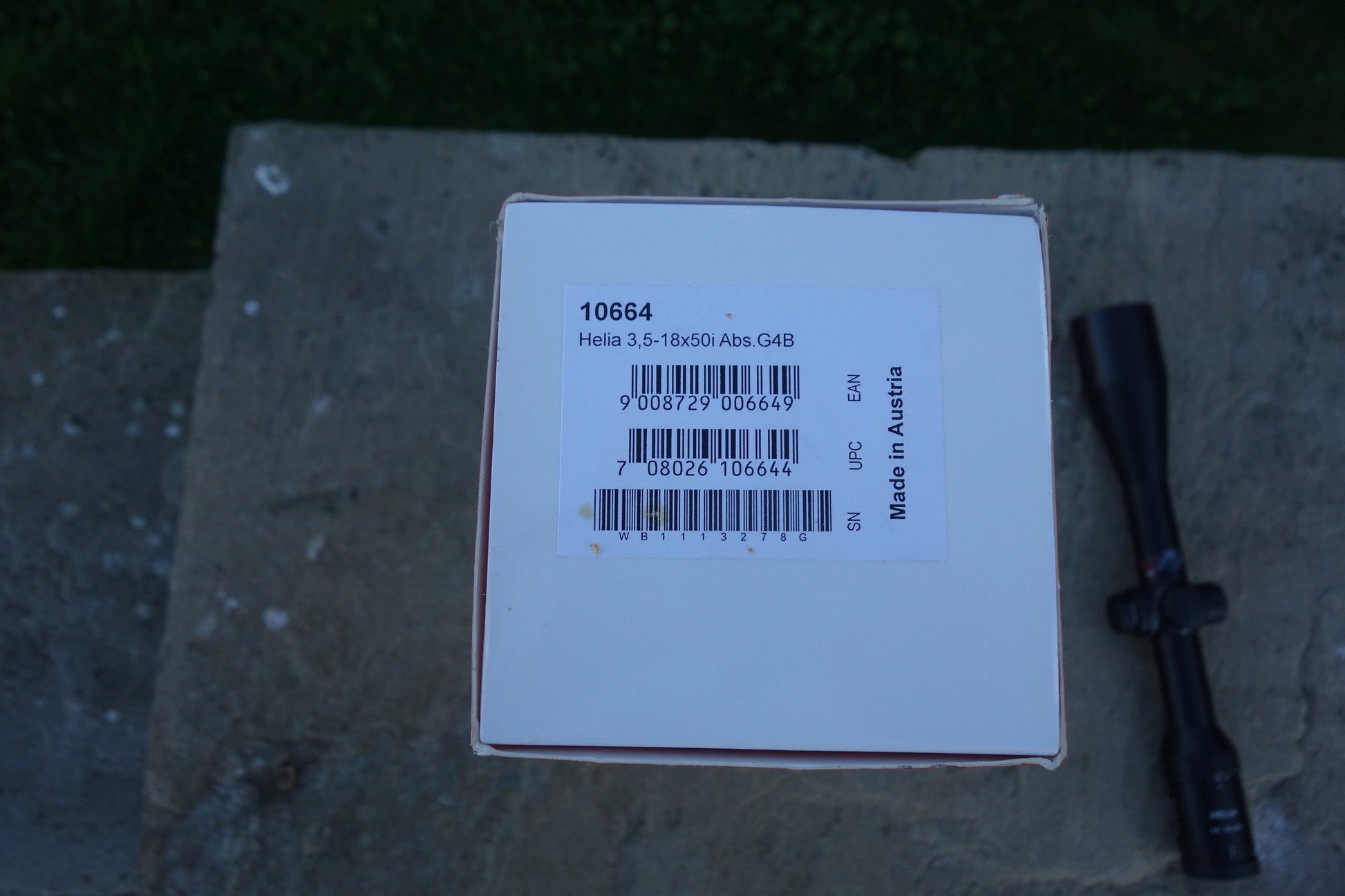 2nd FP reticule G4B with illuminated dot centre, side wheel parallax adjustment, 30mm tube complete with original box and neoprene cover, as new condition Cost £1410 new