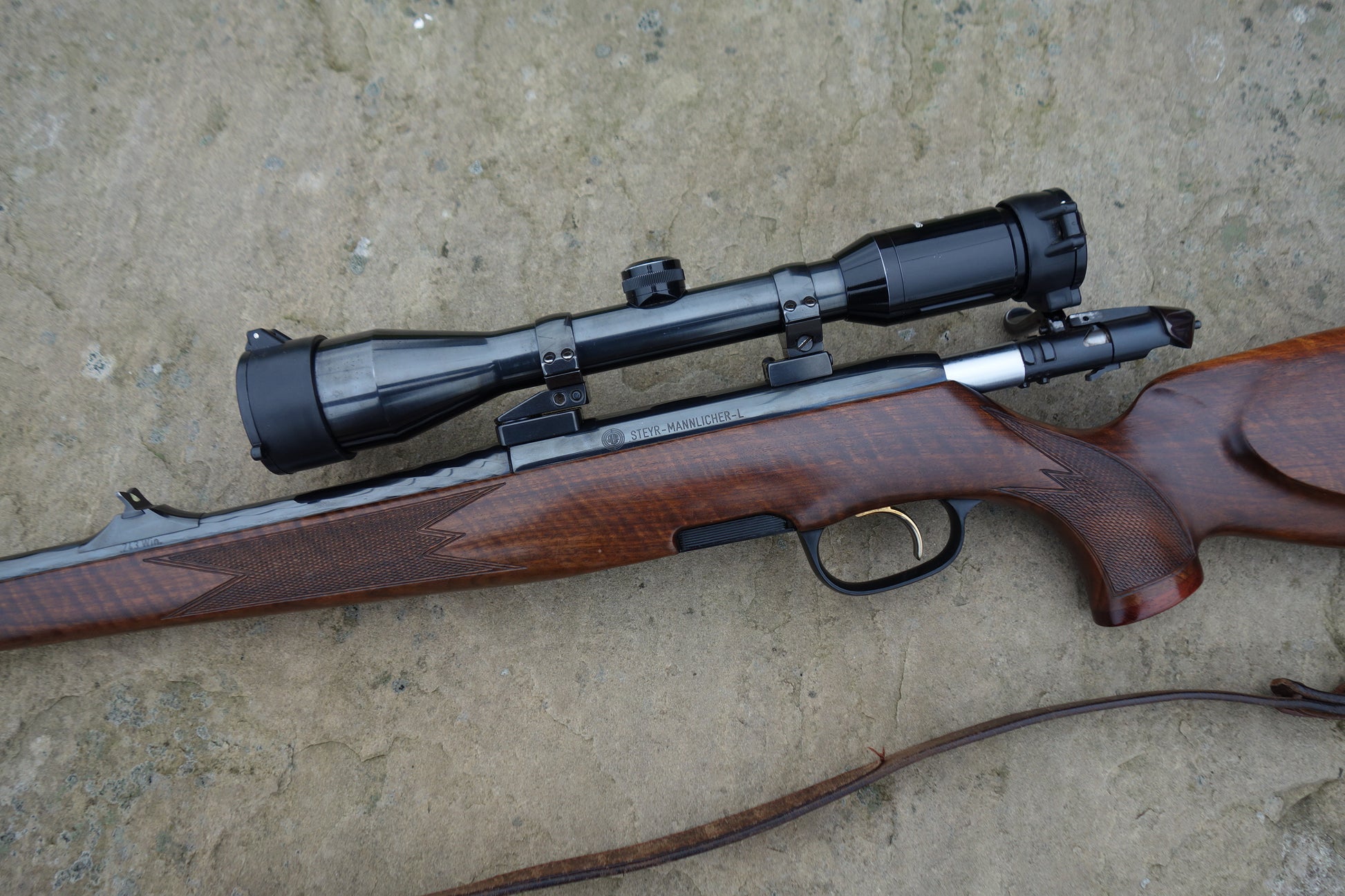 Steyr Manlicher Model L in superb original condition, complete with Swarovski 6x42 Nova 1" steel body scope mounted on Apel QD mounts, a beautiful classic stalking rifle one owner from new.