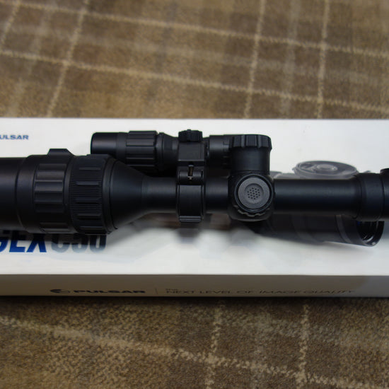 Day and night functionality including Pulsar X850S IR illuminator, original box with charging equipment, pristine condition.