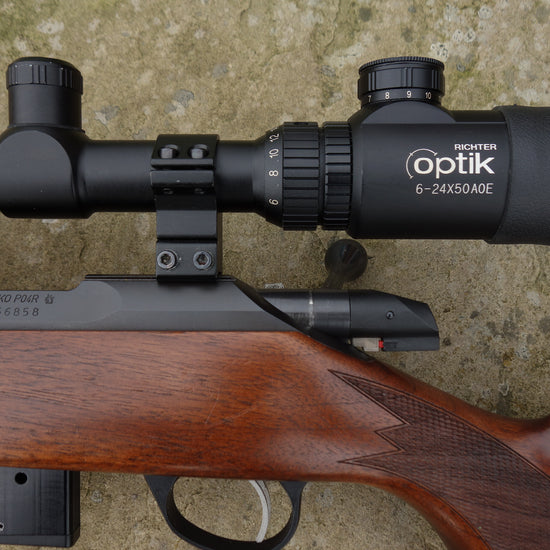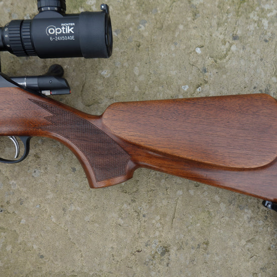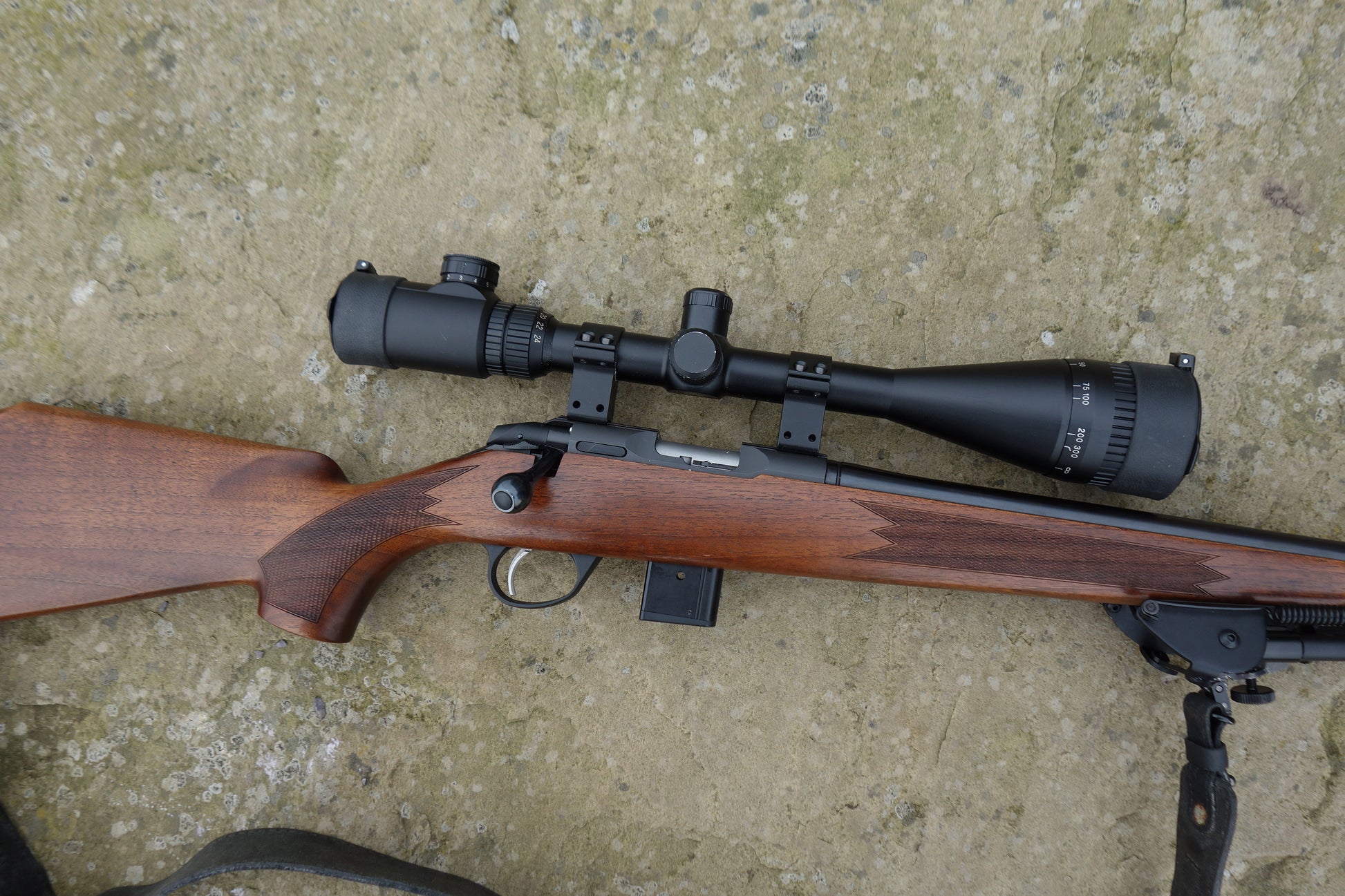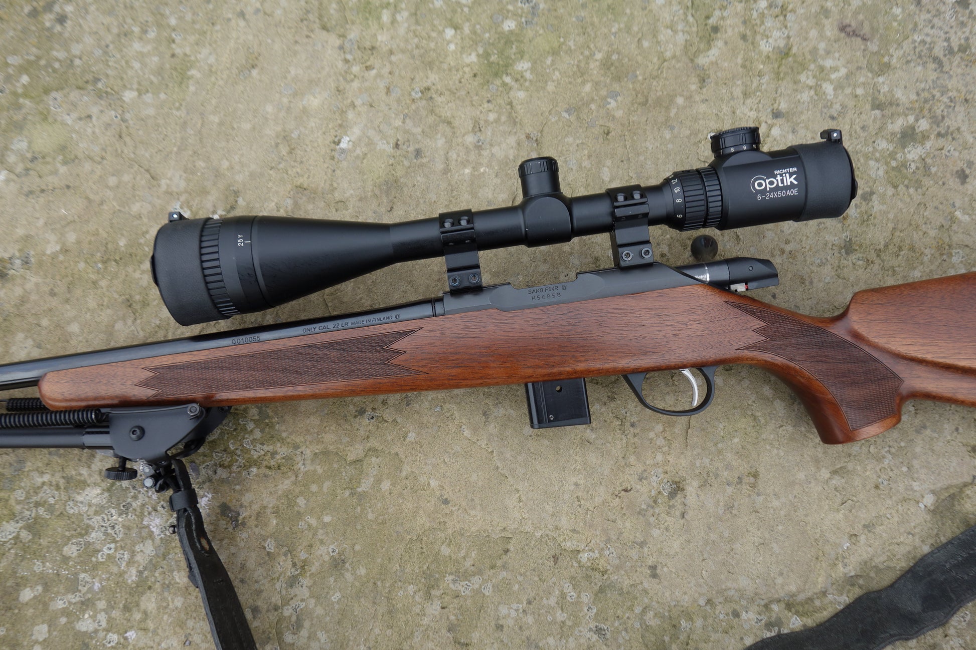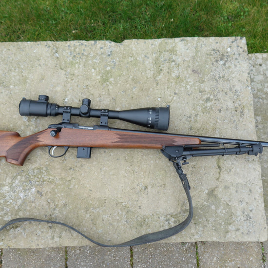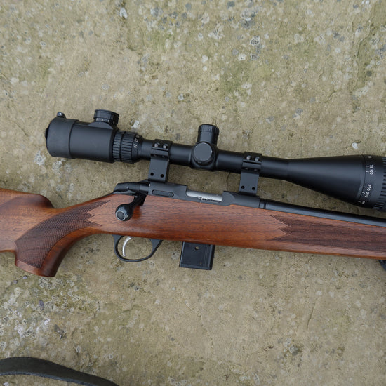 Complete with 6-24x56 illuminated scope, leather sling, SAKS sound moderator and 10 shot magazine.