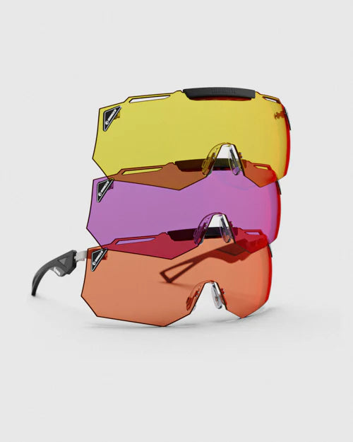 The HyperShot 3 Lens RapidLock All Terrain Kit features an all-new lens shape that delivers our widest field of view for superior target visibility. Paired with Ranger’s RapidLock Lens System, you can quickly and securely interchange lenses as light conditions change—so you can make every shot count. This configuration includes 3 lenses - Medium Yellow, HD Medium, and Dark Purple - maximum versatility for changing light and all environments. The carbon-reinforced frame with Steady-Grip rubber temples and the Steady-Grip silicone nose piece delivers secure on-face stability and comfort you can trust in the heat of competition. Includes a protective hard-shell case and high-density microfiber cleaning cloth.