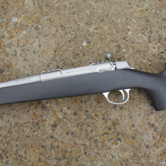 Carbon fibre stock with new textured finish, 20" fluted barrel, integral picatinny scope rail, new multi stage adjustable trigger, 5 round detachable magazine, super light weight at only 5lb 12oz