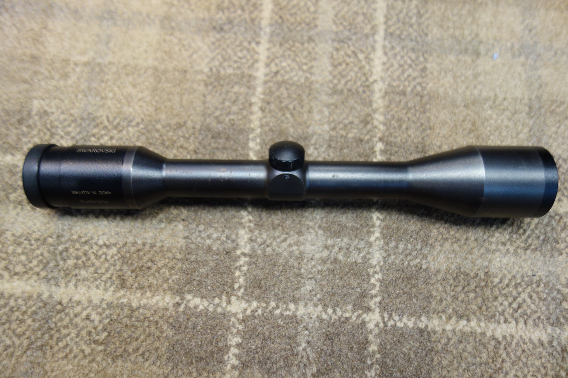An original steel body PF Habicht 1" tube, No4 reticule, 1cm adjustment, showing some external wear and tear but still optically sharp as a pin.
