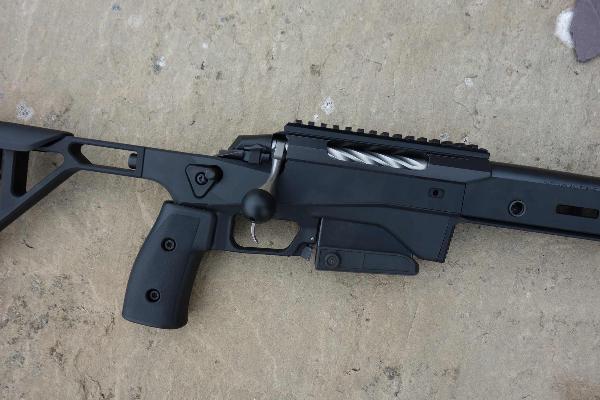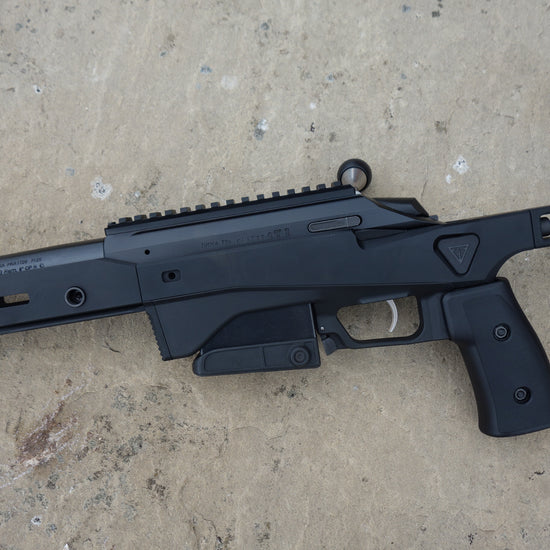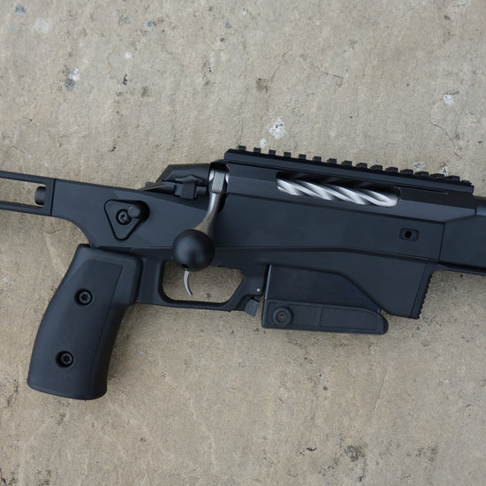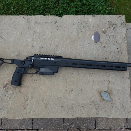 24" heavy barrel with 1-8" twist, matt black aluminium chassis with m-lock and Arca forend, adjustable comb and butt plate, 10 round magazine, fluted bolt with oversized handle, one piece picatinny rail.