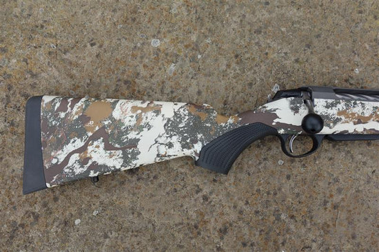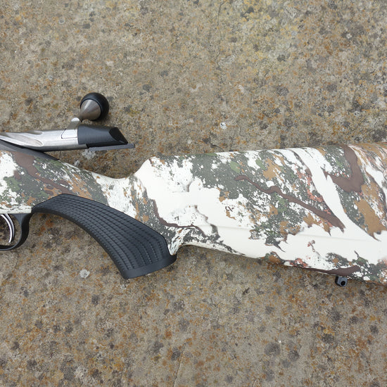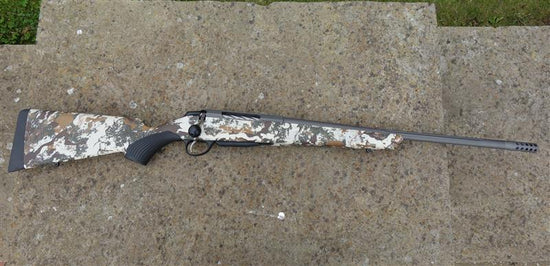 Latest edition using First Lite Spectre camo pattern, ideal for the woods or open hill, Cerakoted receiver and barrel, 20" fluted barrel screw cut 5/8th unef and supplied with factory muzzle break, 3 round magazine, over sized bolt handle. MOA accuracy guaranteed.