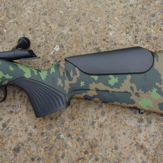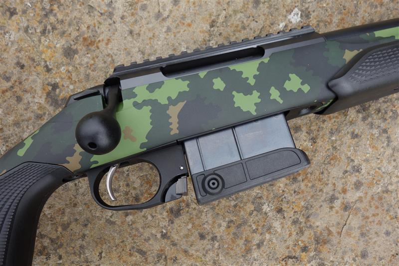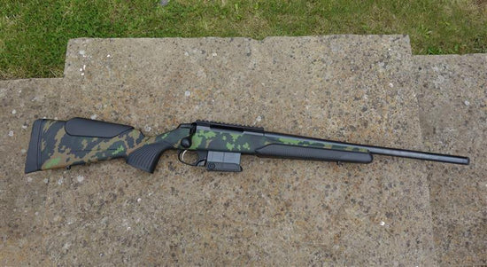 Latest model from Tikka sporting a very smart scandi camo pattern stock, 20" heavy barrel screw cut 5/8th unef, 10 round detachable magazine, full length picatinny scope rail, over sized bolt handle, a very versatile rifle for the range or for stalking.