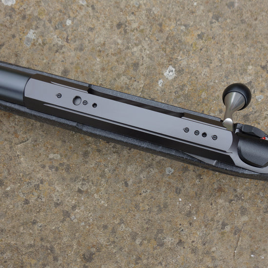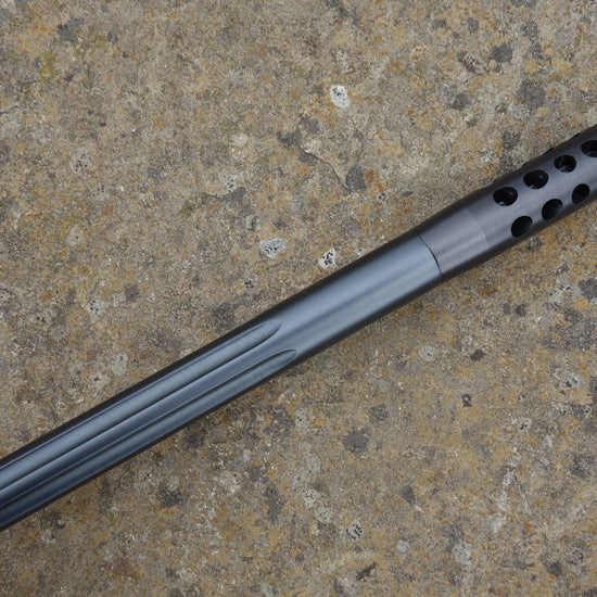 Black Roughtech stock, 24" fluted barrel s/c 5/8th unef, factory muzzle break, detachable 3 rnd magazine, oversized spiral flute bolt handle, 1 -8" twist barrel.