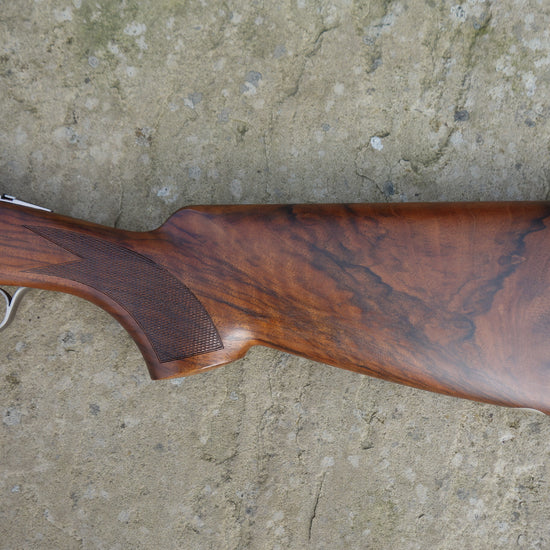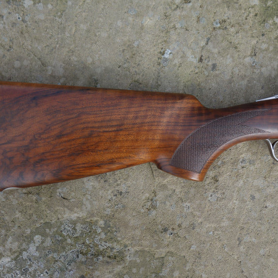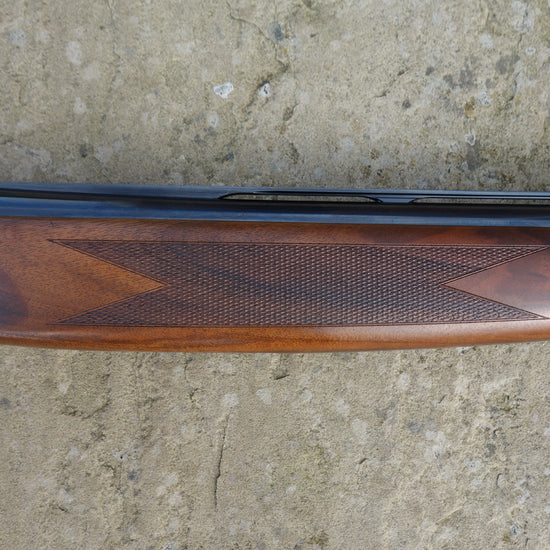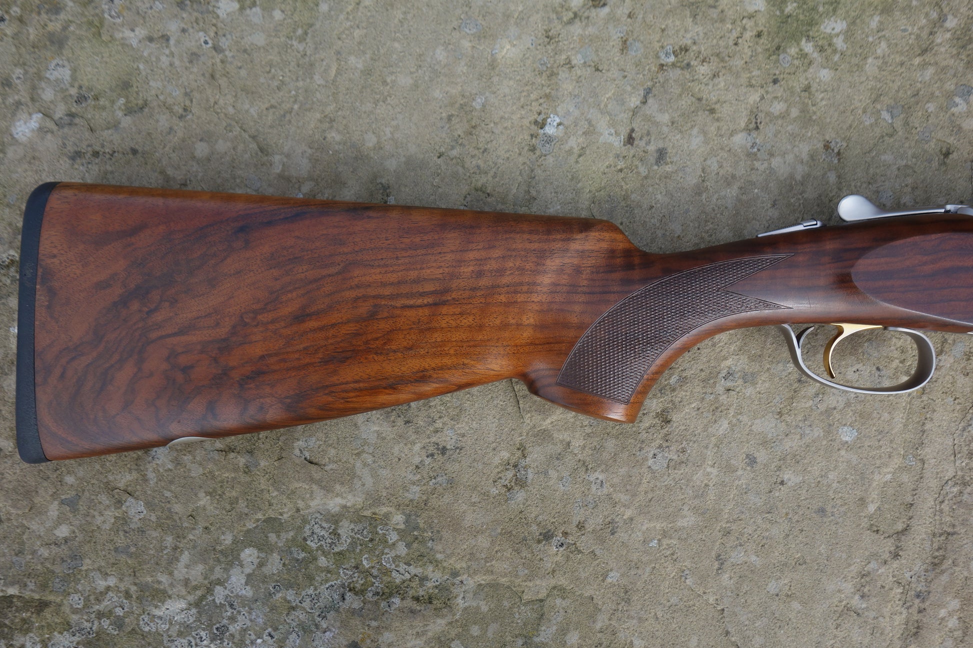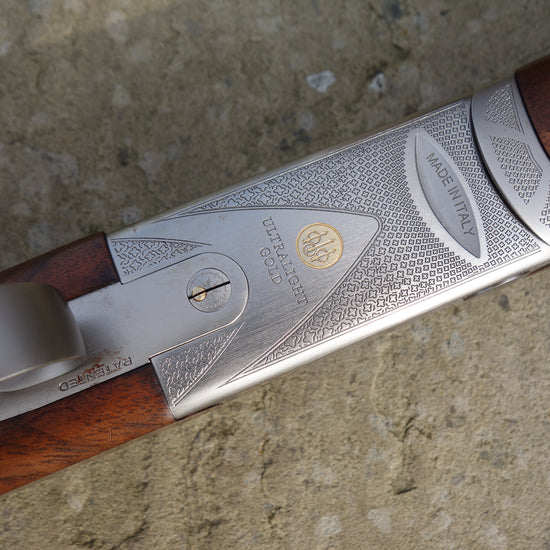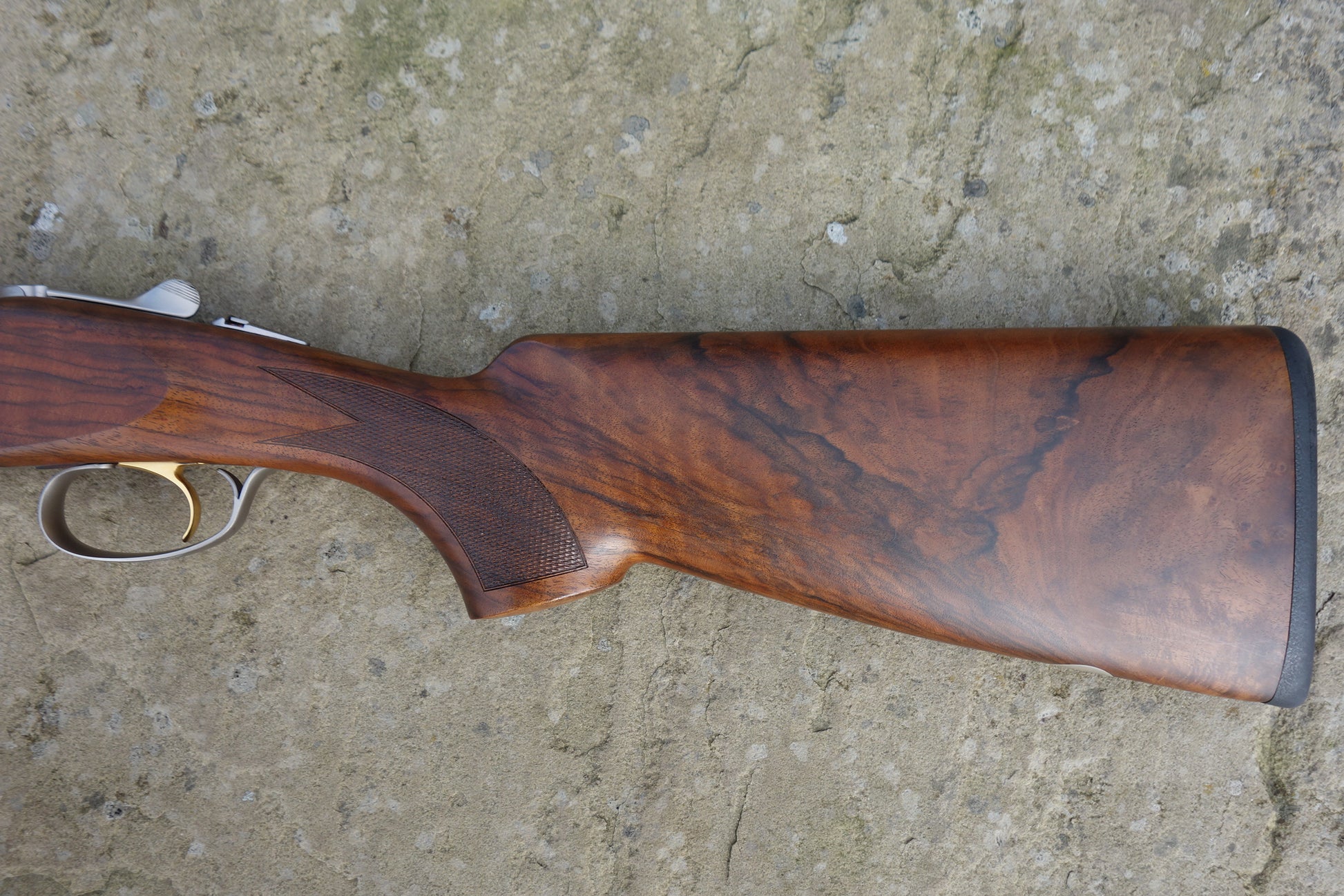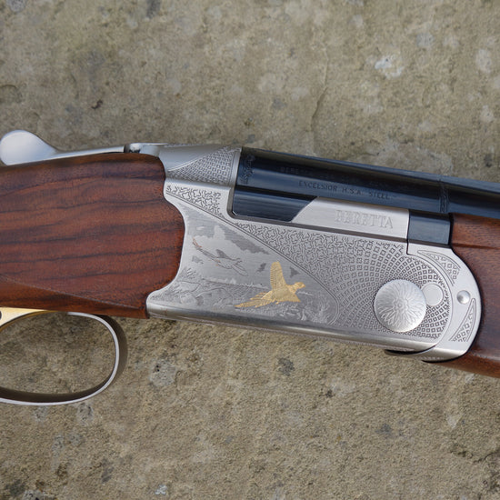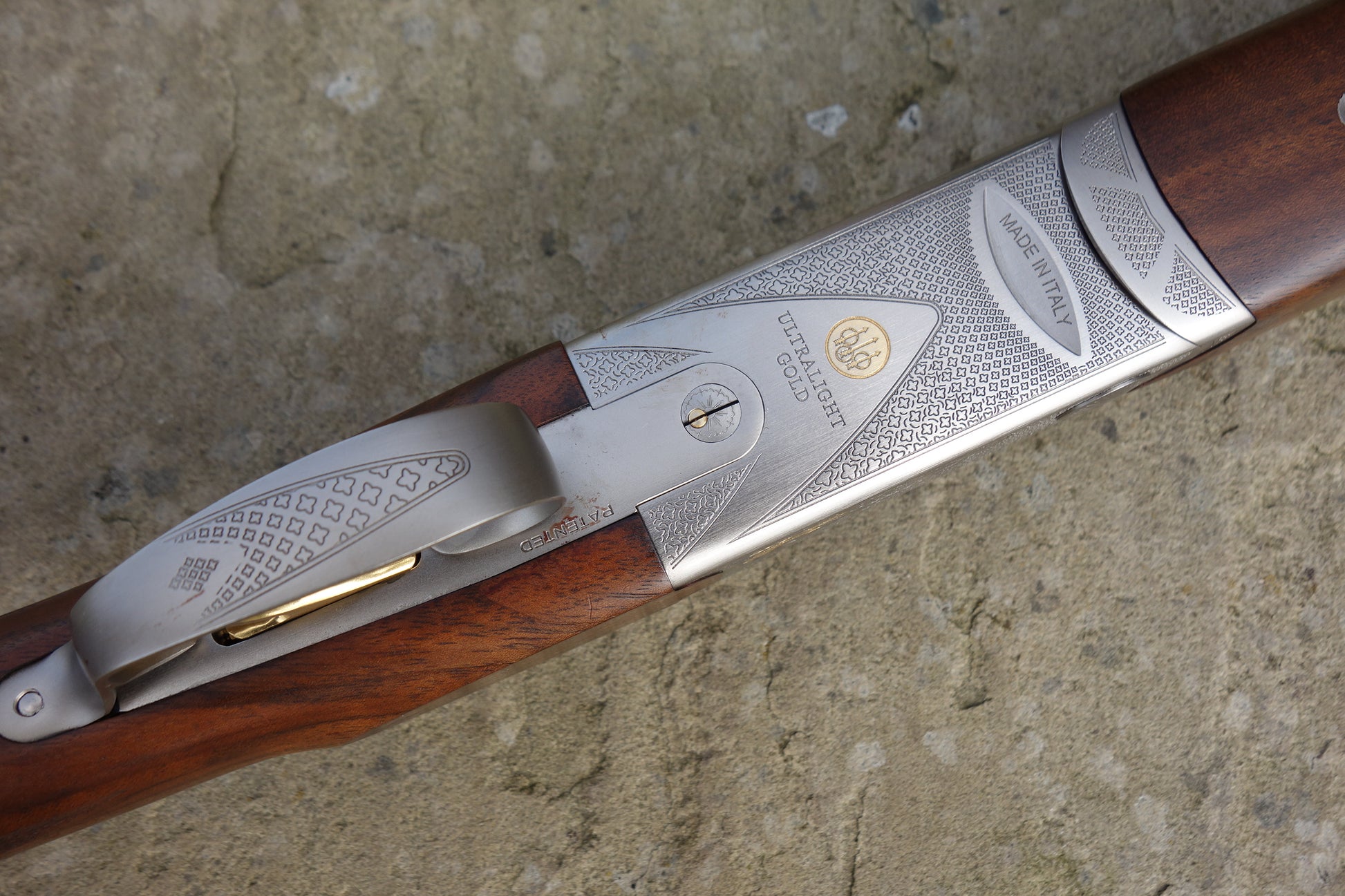 A beautiful example with highly figured stock and forend, light weight receiver engraved with game scenes, automatic safety catch, 2 3/4" chambers and HP steel proofed, pristine condition complete with Beretta ABS case.