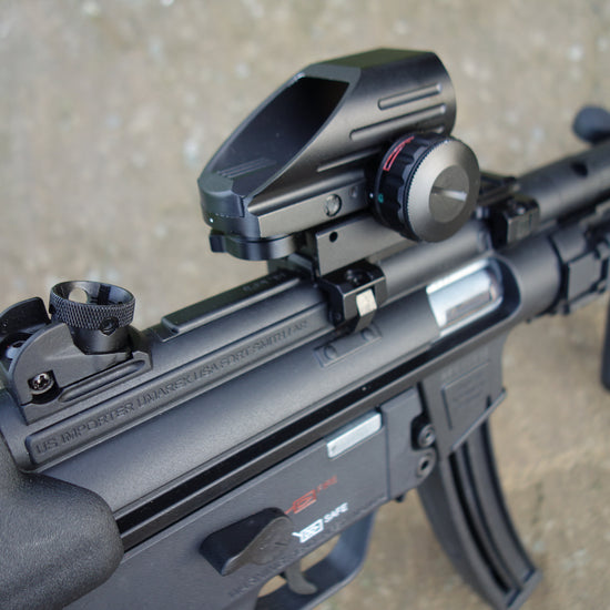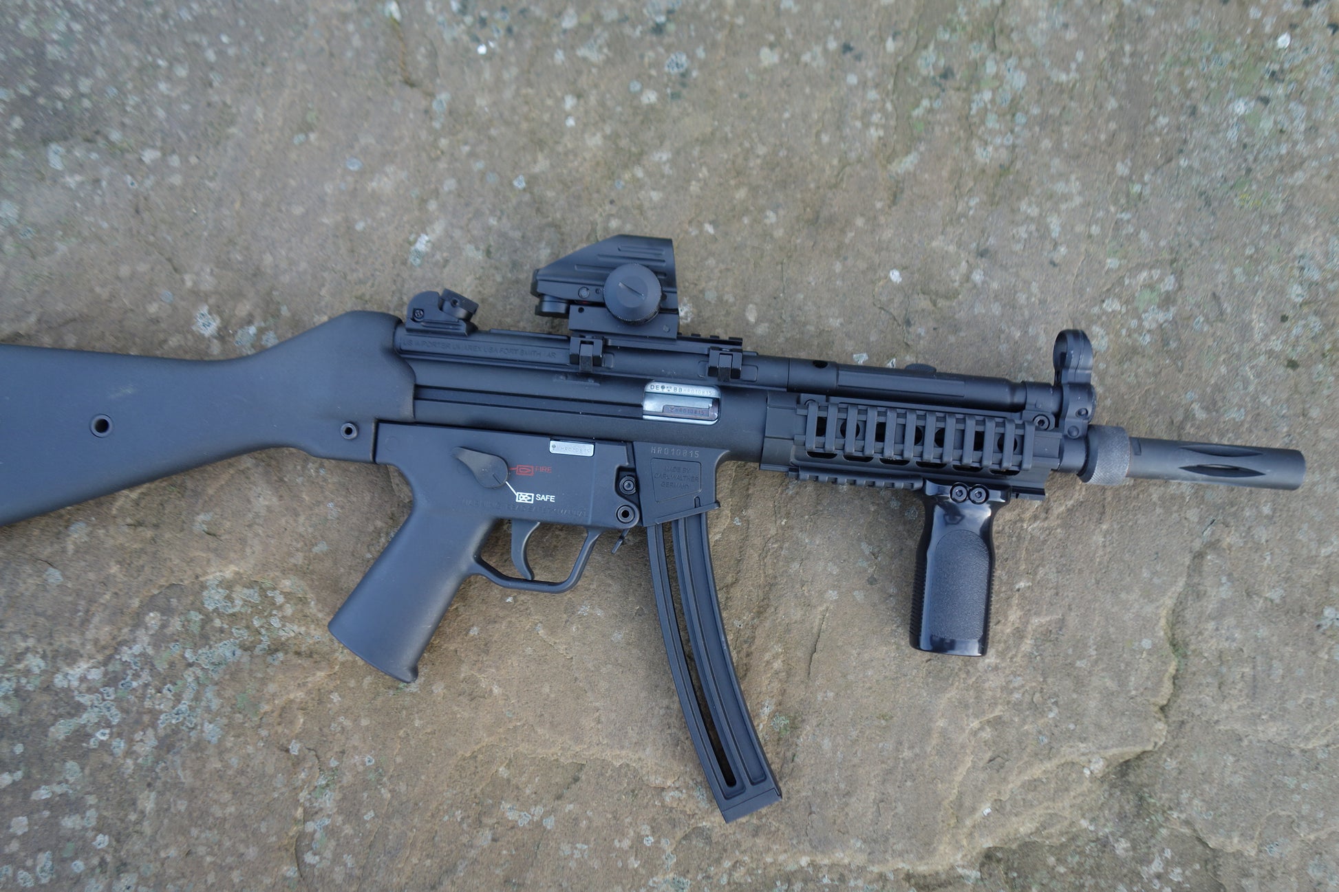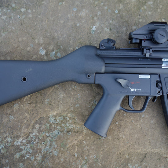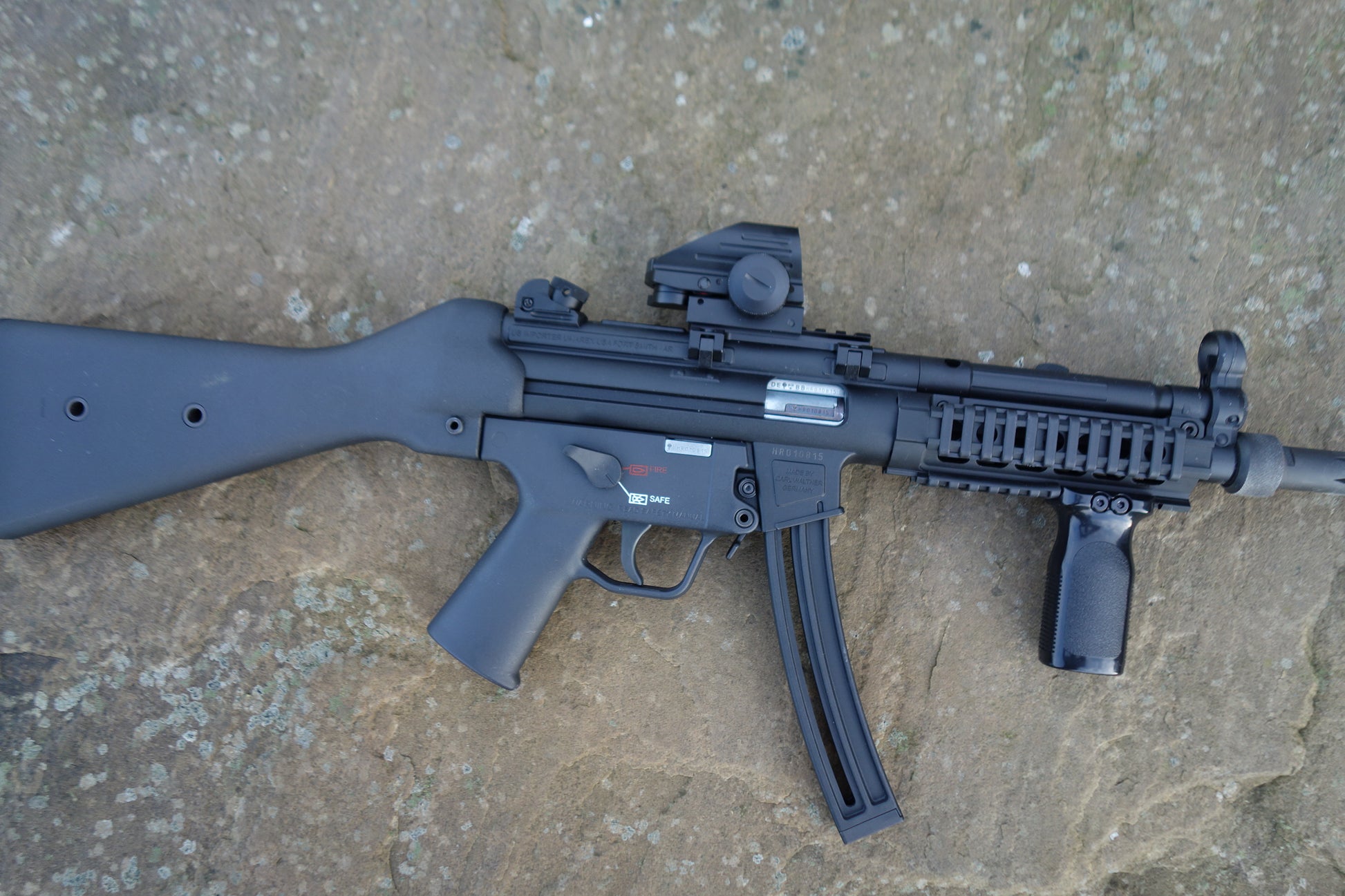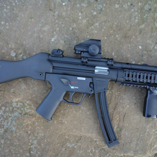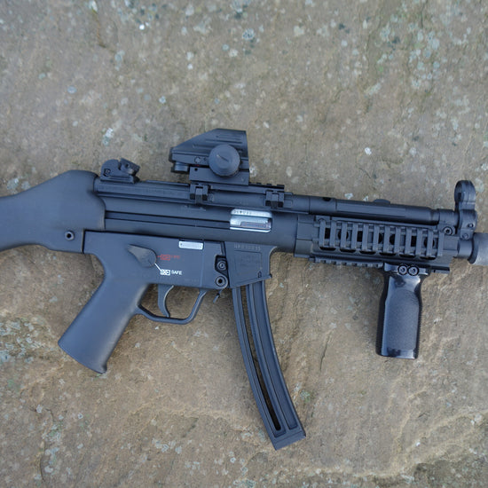 A quality reproduction by Walther featuring 3 x Picatinny rail forend with forward grip, Walther holo sight with multi reticule and range bag.