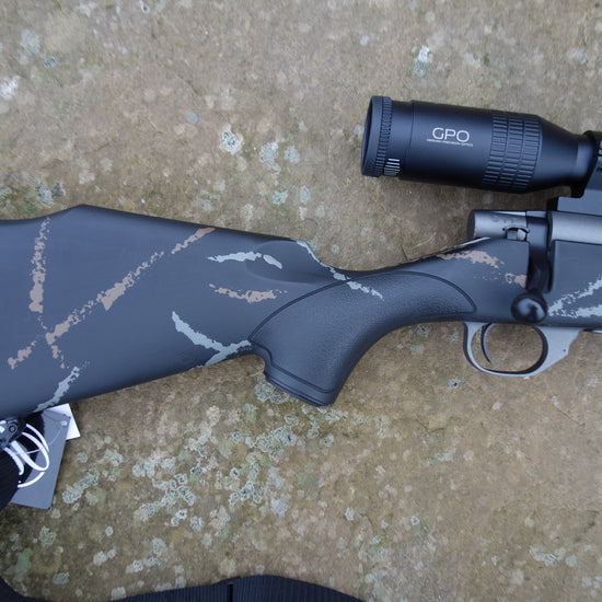 Package includes GPO 7x50 illuminated G4i scope, Talley mounts, Evolve moderator, Bi-pod, sling, rifle case and bore snake, outstanding value rifle with 24" spiral fluted barrel, Cerakote action and barrel, a superb value for money deer stalking package deal.