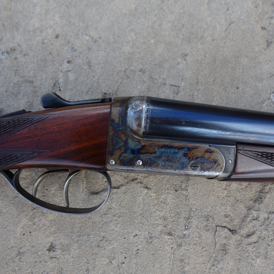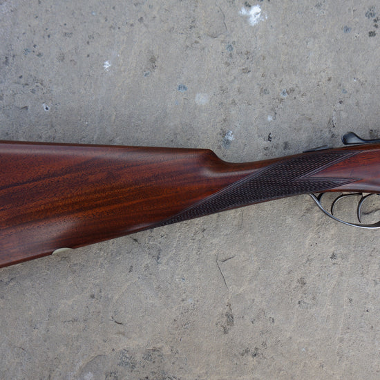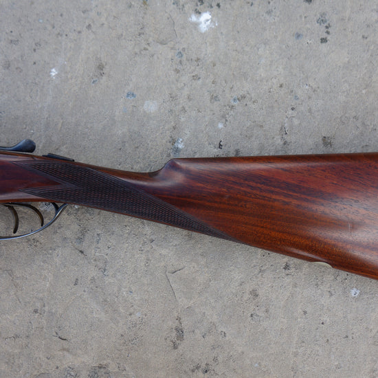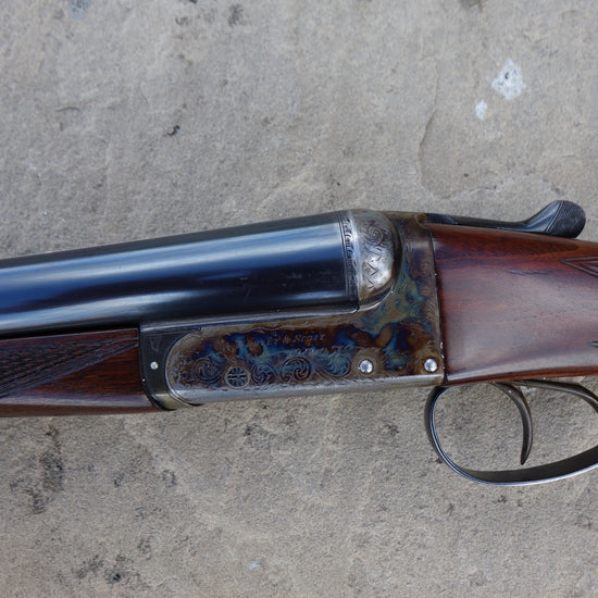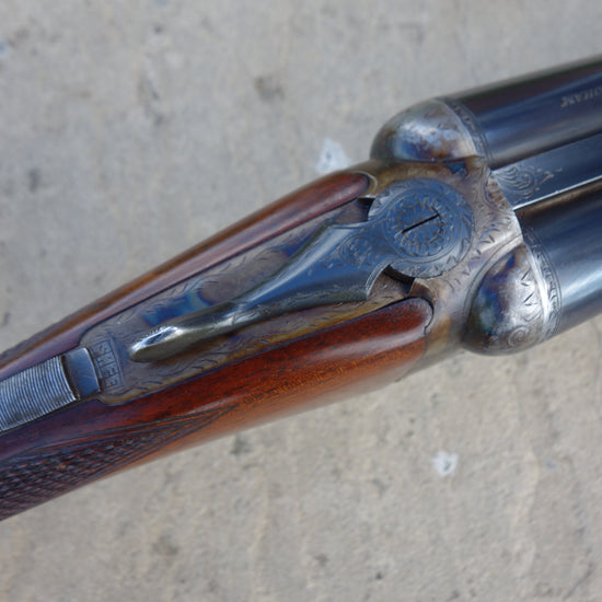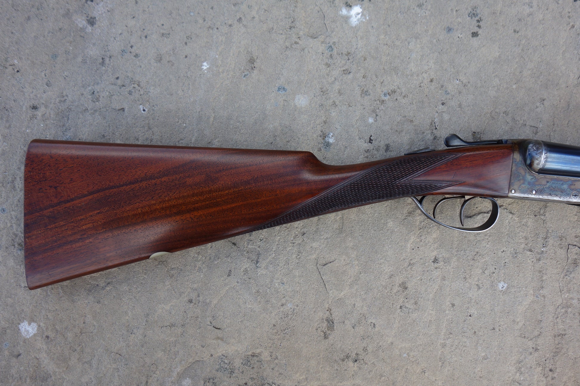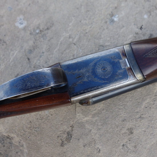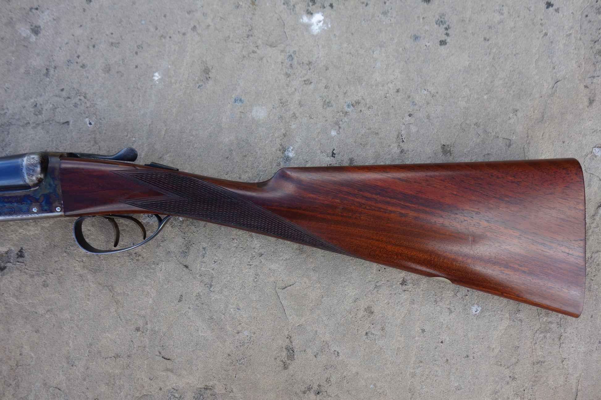 A beautiful example in superb condition, retaining 90% original colour finish and a very crisp action, 2 3/4" chambers, double trigger, choked 1/4 & 3/4 bores as stamped at .729"