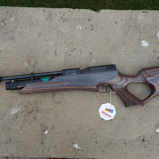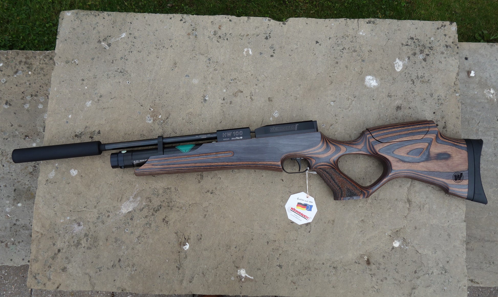 Possibly the most reliable PCP available, laminate thumbhole ambidextrous stock with adjustable comb, 2 x 14 round magazines, HW sound moderator, 2 stage match trigger, QF adaptor included.