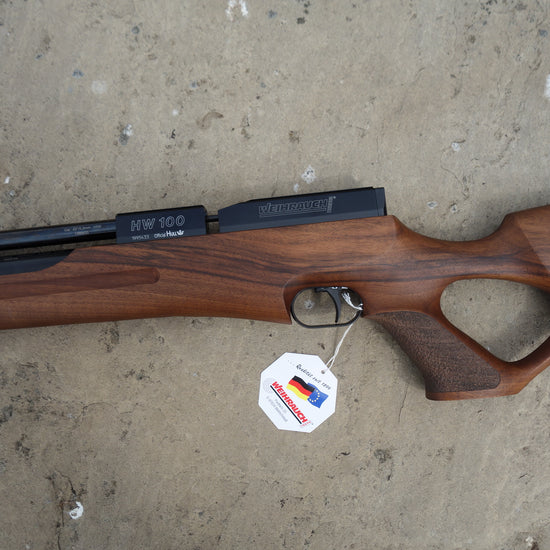 The thumb-hole variant allows for added control of the rifle and is therefore a favourite amongst shooters plus there are finger grooves in the forend for extra stability. Couple this superb stock with a karbine length barrel and you have what is often described as the ultimate HW 100.