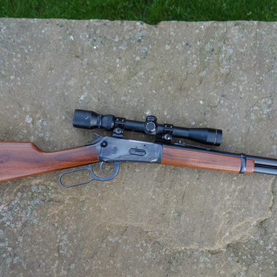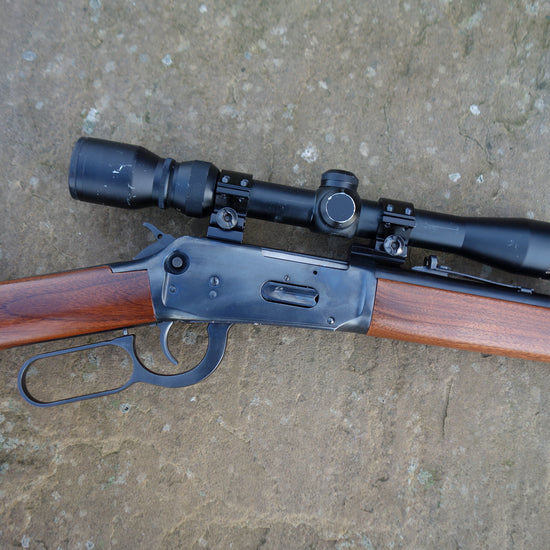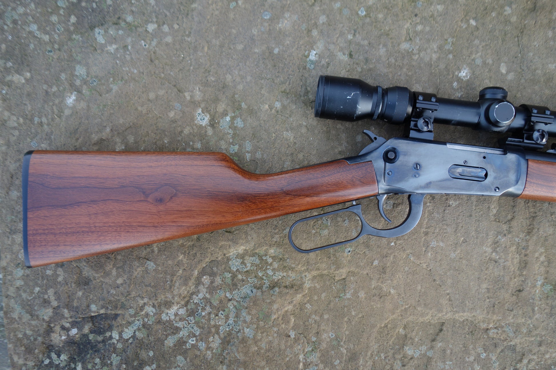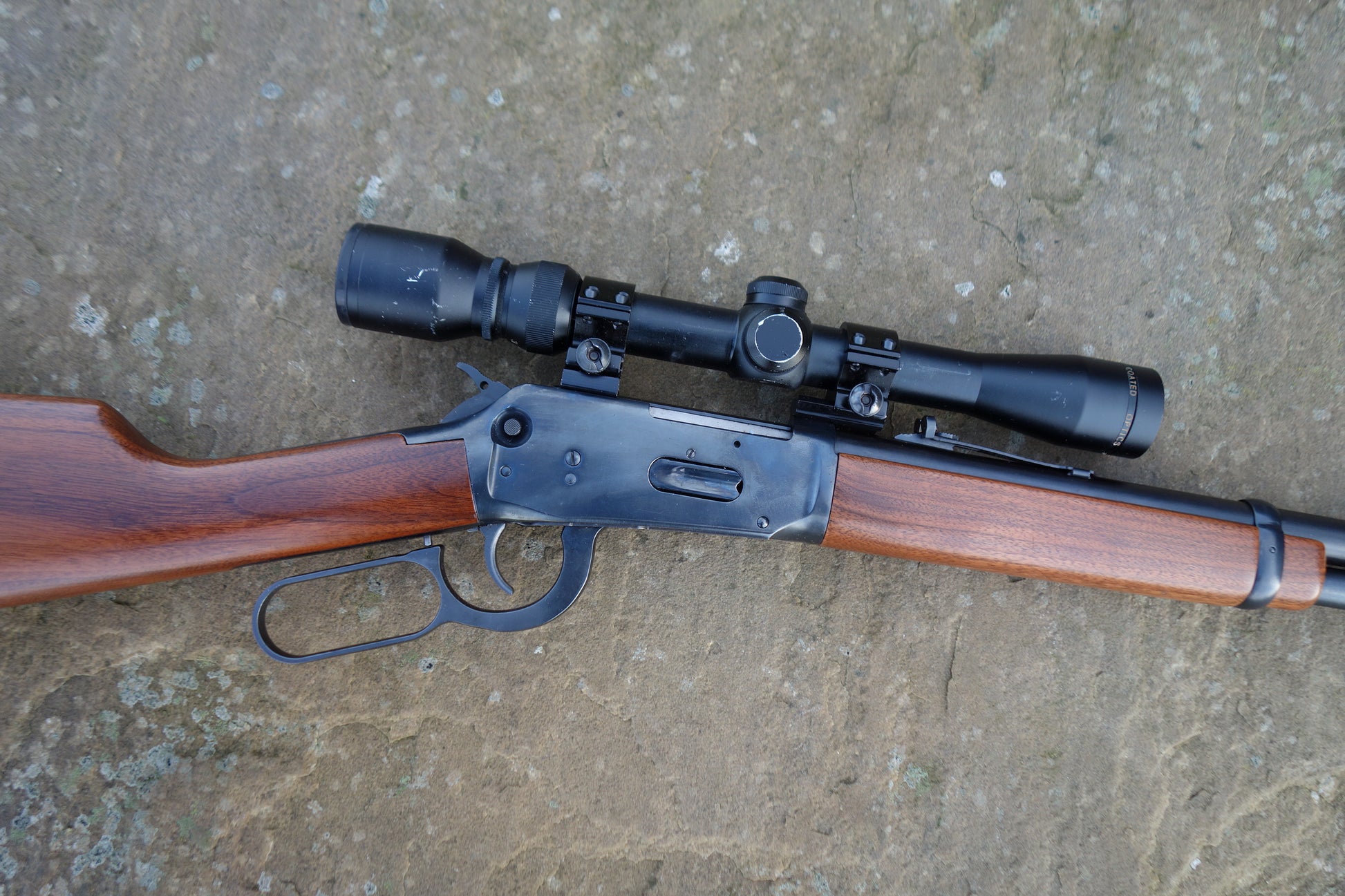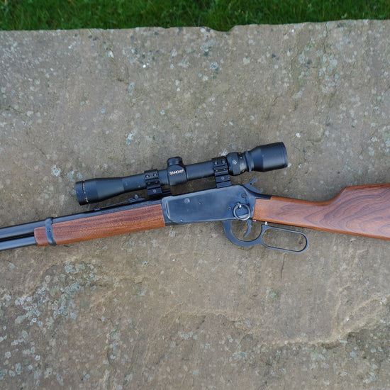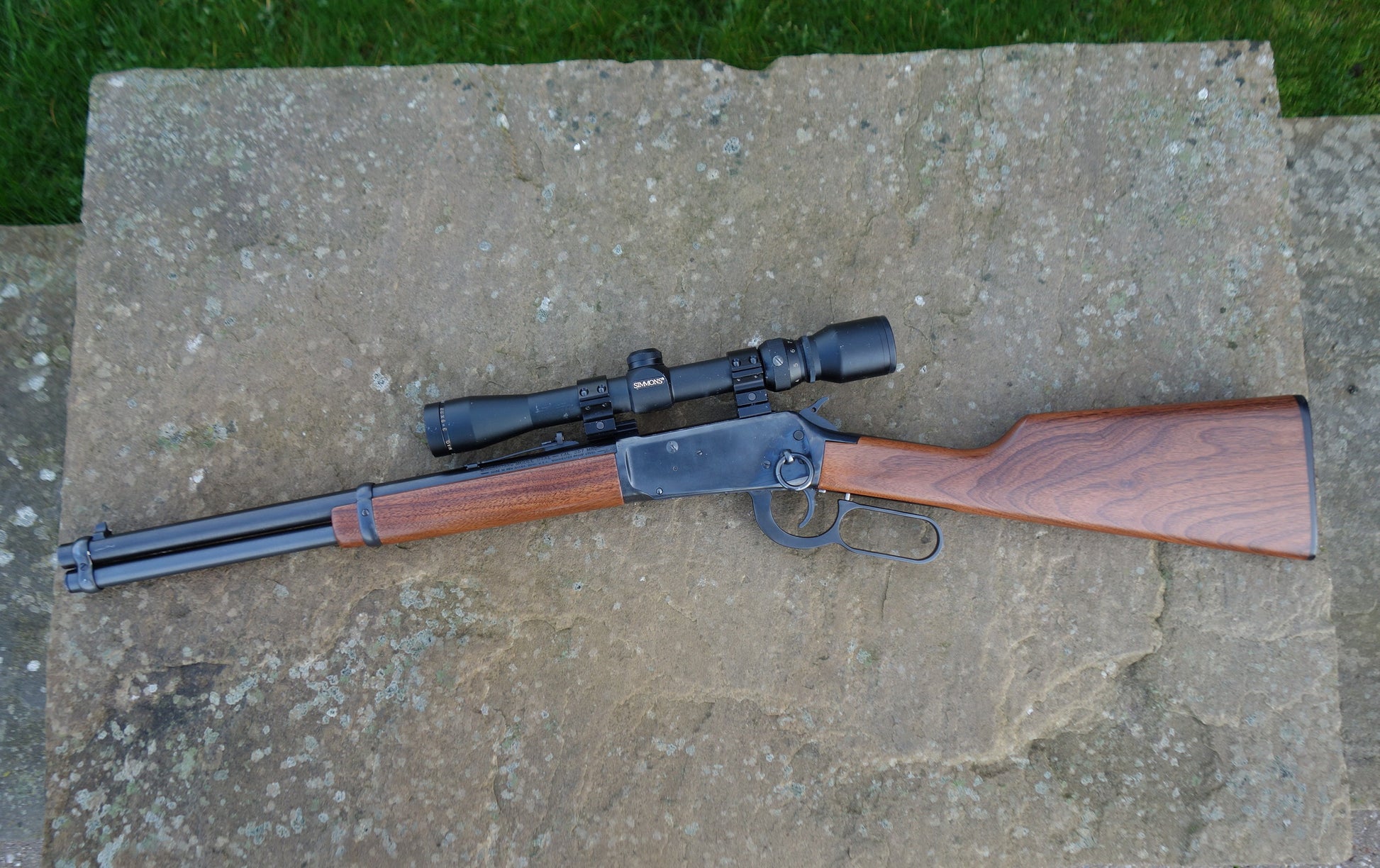 16" Trapper model with angle eject, scope bases and a simmons 3-9x32 scope, very good condition.