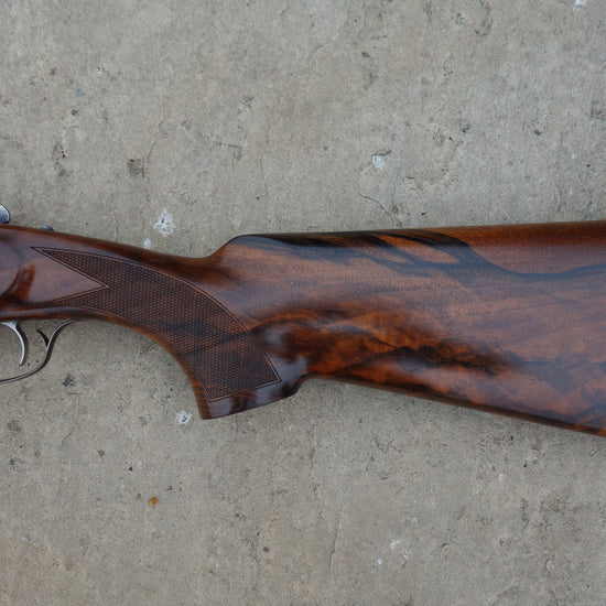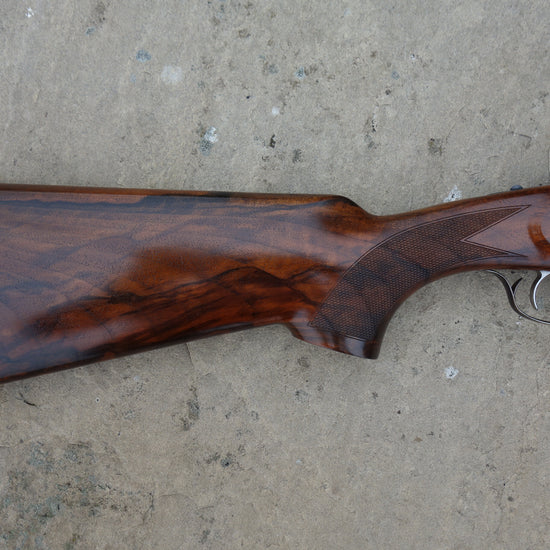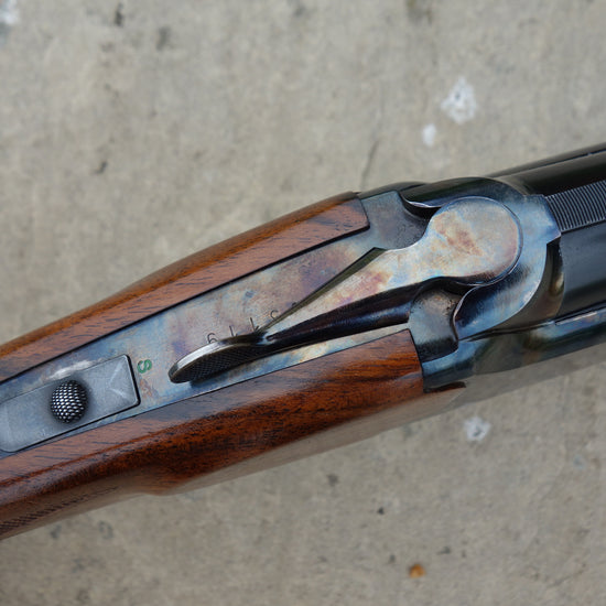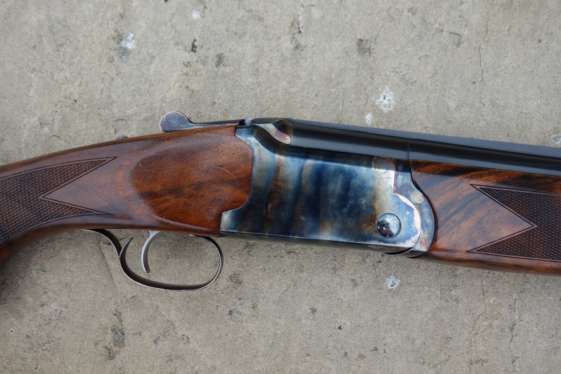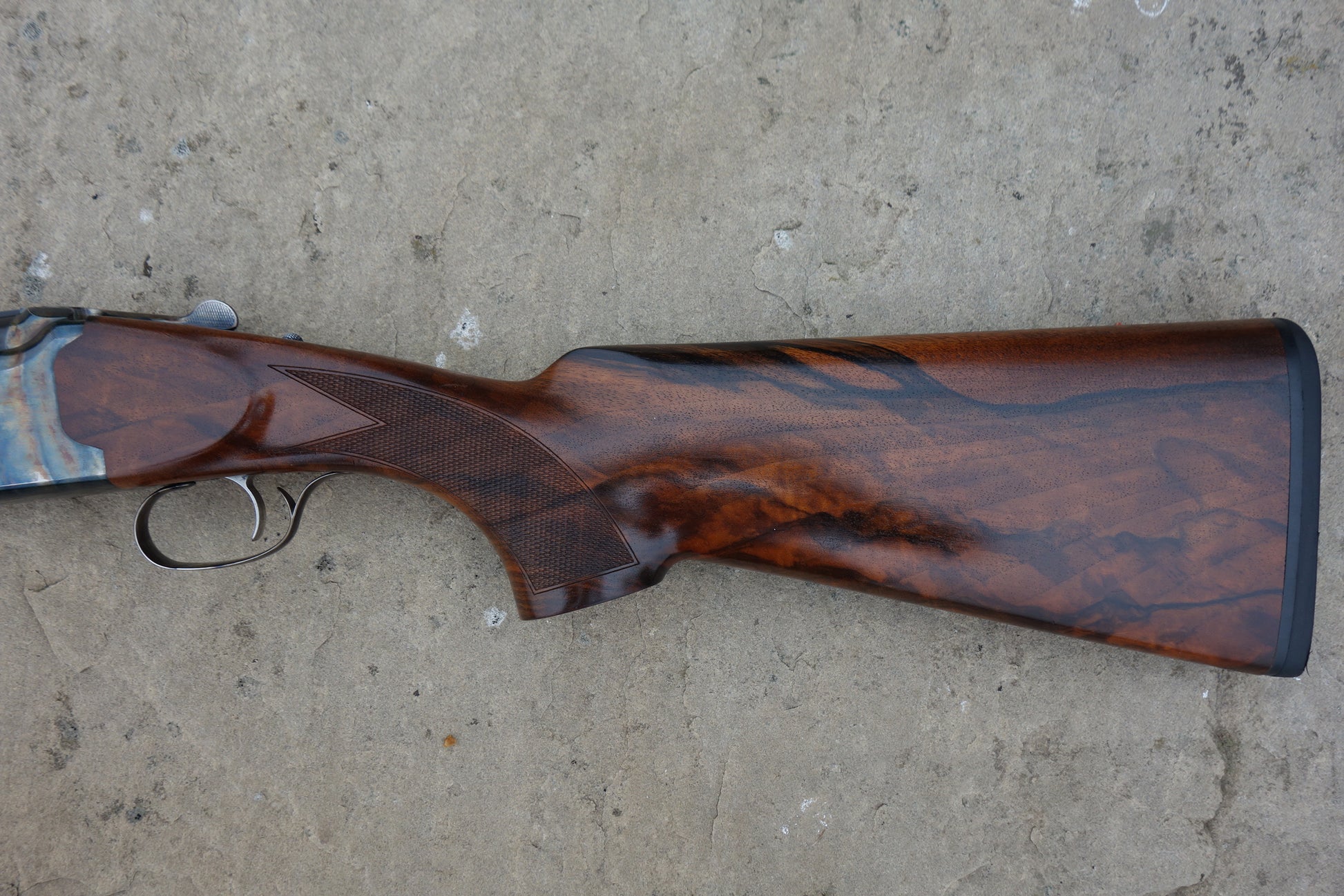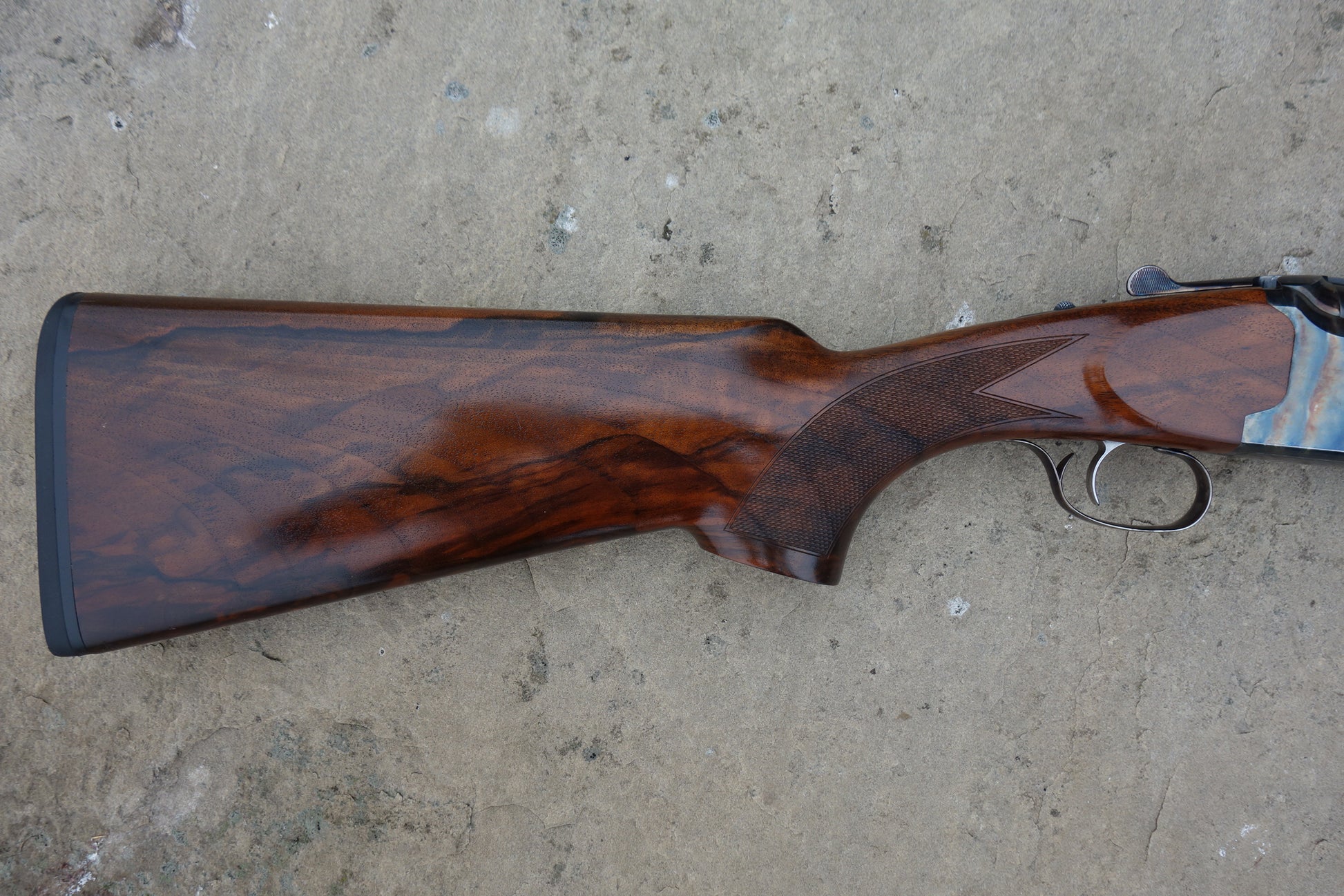 Single trigger none ejector 3.5" magnum chambers and super steel proofed, amazing quality wood with colour case finished receiver, flush fitting multi chokes.